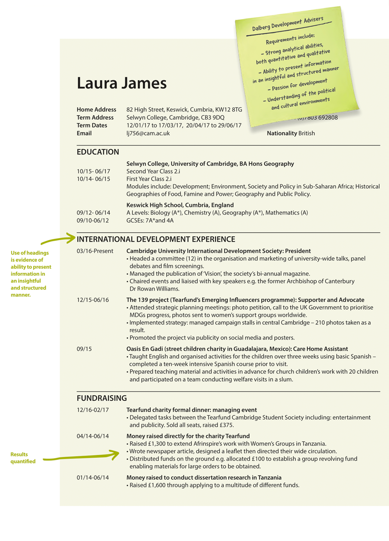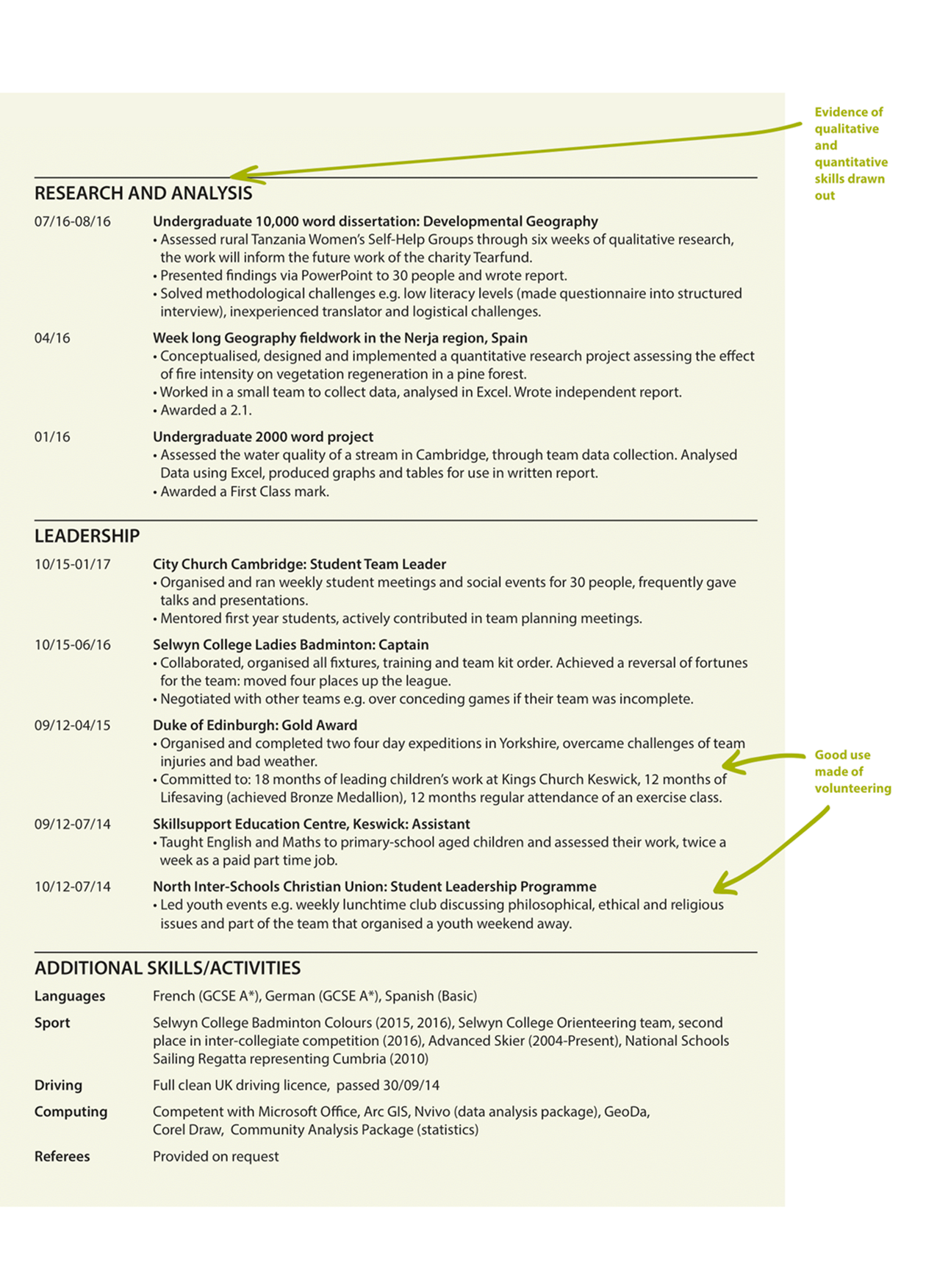 Например, если претендуете на позицию преподавателя английского, укажите образование, уровень владения языком, опыт работы и стажировки. Нет смысла писать, что вы когда-то работали экономистом, но эта информация может пригодиться, если вы захотите устроиться в англоязычное медиа о бизнесе и аналитике.