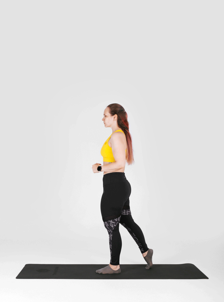 Нагружают ноги и ягодицы. В упражнении усилены несколько фаз цикла шага: опора, перекат и выталкивание стопой. Движение нагружает мышцы ног и ягодиц, а также учит нервную систему правильной координации мышц при шаге.