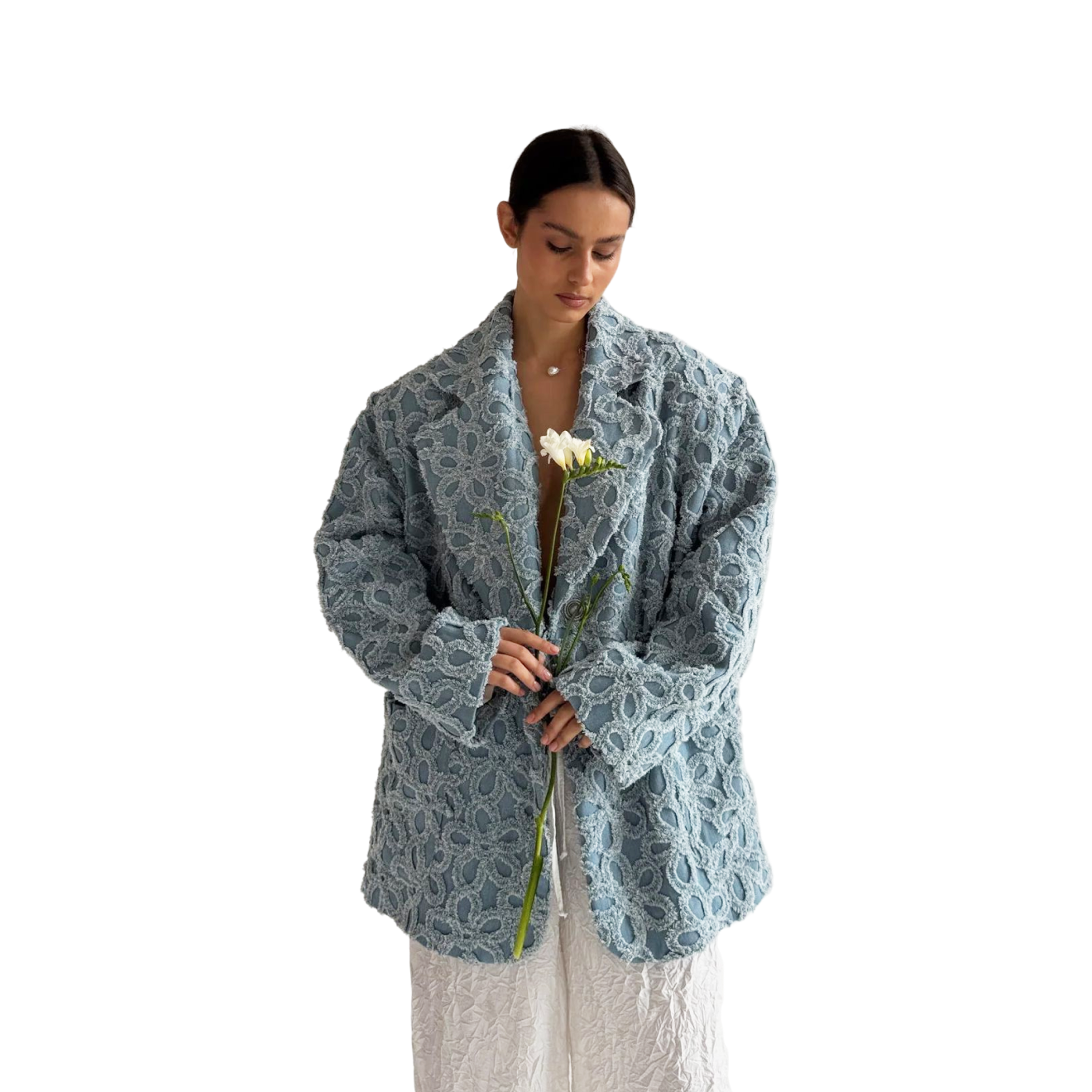 Много ли вы видели пиджаков с махровыми цветами? Если бы весна была предметом гардероба — он был бы именно таким: из плотного денима, чтобы намекать о приближающемся лете, оверсайз, чтобы вниз можно было надевать сколько угодно слоев теплого трикотажа, и с цветочным паттерном, чтобы выделять из толпы и задавать настроение. Этот пиджак отлично подойдет тем, кто не боится экспериментировать и любит вещи «не как у всех»