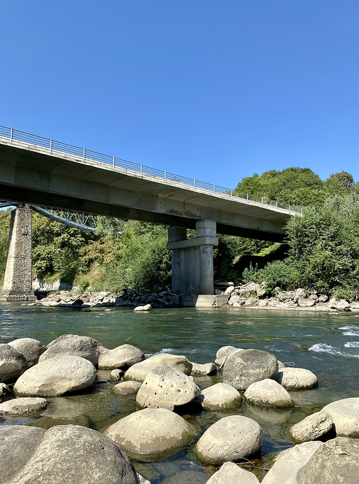 Каменный мост с арочными пролетами через реку Дах находится в самом центре станицы. Его построили в 1906 году, и он отлично сохранился до наших дней. Рядом расположен небольшой галечный пляж — летом можно купаться.
