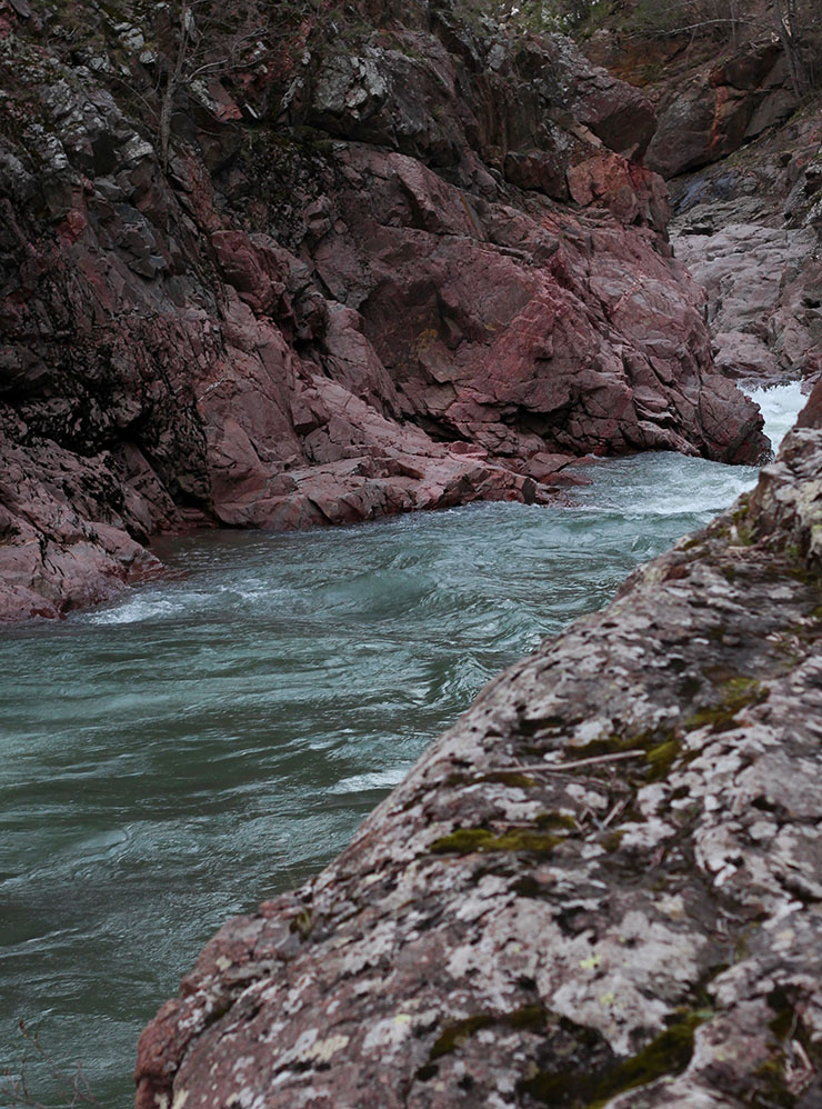 Чтобы как следует рассмотреть Гранитный каньон, нужно остановиться в одном из карманов на трассе, перелезть через отбойник и спуститься к воде. Советую надевать обувь с нескользящей подошвой и быть очень осторожными.