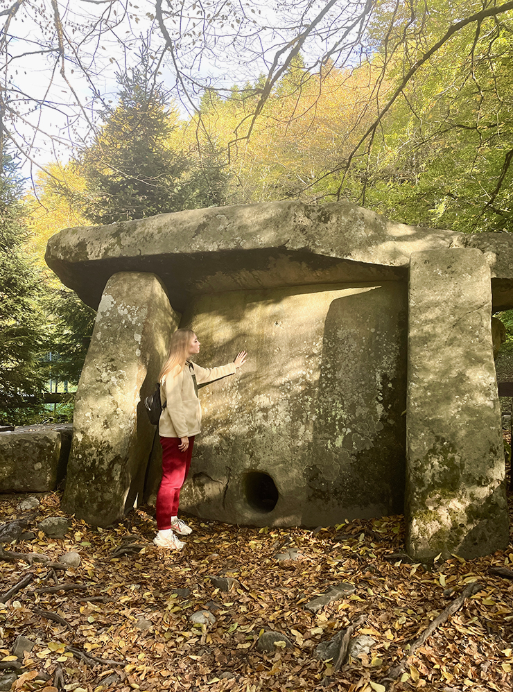 Еще рядом с «Тропой леопарда», тоже в границах Кавказского заповедника, находится Гузерипльский дольмен — самый большой в Адыгее . Его высота — больше 2 м, ширина — около 2,5 м. По форме он напоминает домик. В нижней части одной из стен есть круглое отверстие — его назначение неизвестно.