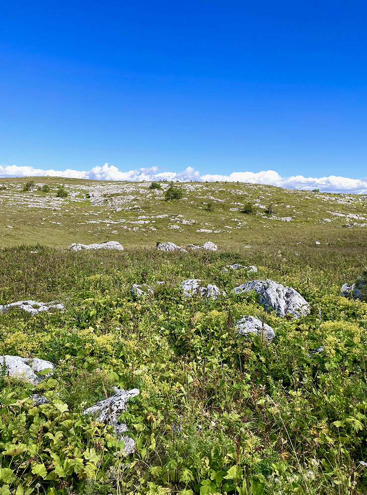 Я рекомендую прогуляться от КПП до скалы Нагой-Кош. Путь проходит вдоль хребта Каменное море, в конце — панорамный обзор на скальный обрыв и Фишт-Оштенский массив. Протяженность маршрута — около 10 км туда-обратно, практически без перепадов высоты. Прогулка займет пять-шесть часов.