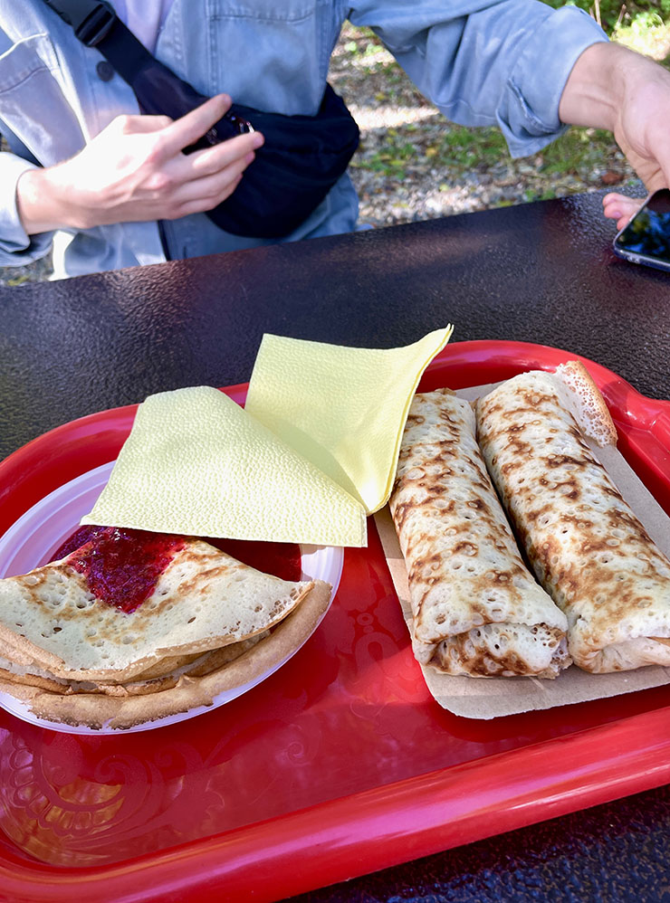 В Даховской на перекус рекомендую зайти в блинную возле нижней станции Савранской канатной дороги. Место не отмечено на картах, но пропустить его сложно. Блинчики там крупные, и в них много начинки. Мои любимые — с ветчиной, сыром и зеленью.