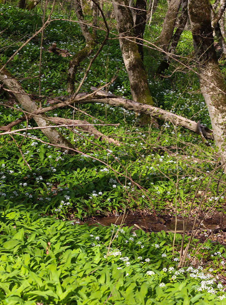 В январе-феврале в лесах появляются первоцветы — цикламены и подснежники. Срывать их запрещено: они занесены в Красную книгу. Увидеть цветы можно, например, в окрестностях Каменномостского.