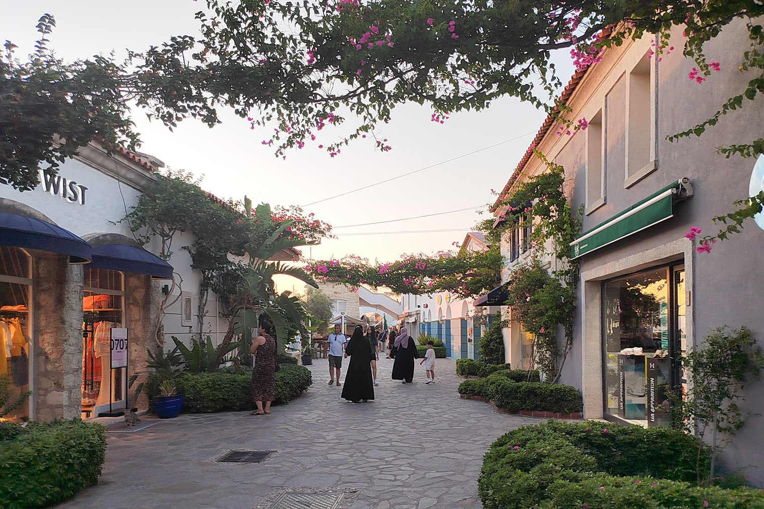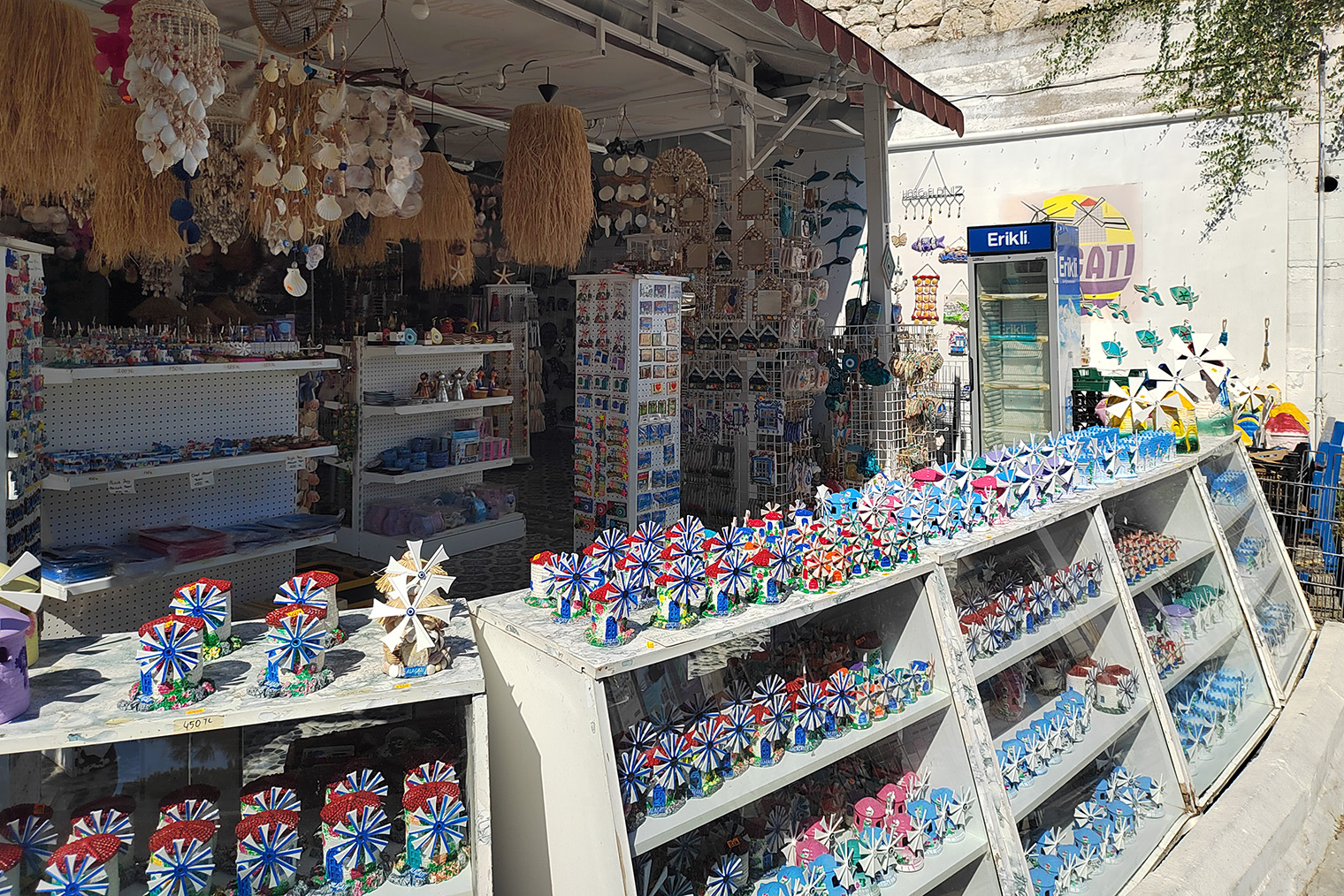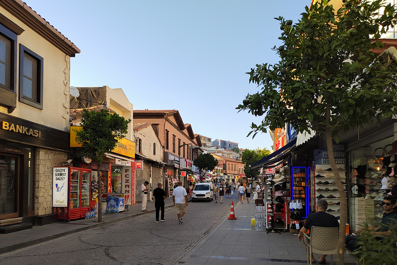 Много лавок расположено вдоль набережной и на туристической улице 2001 Sok — на «Гугл-картах» ее называют по-старому, бульваром Ататюрка. Днем она кажется пустынной, несмотря на то что все магазины и кафе открыты. С заходом солнца она оживает: продавцы демонстрируют свои товары, официанты зазывают в кафе, из баров звучит музыка.