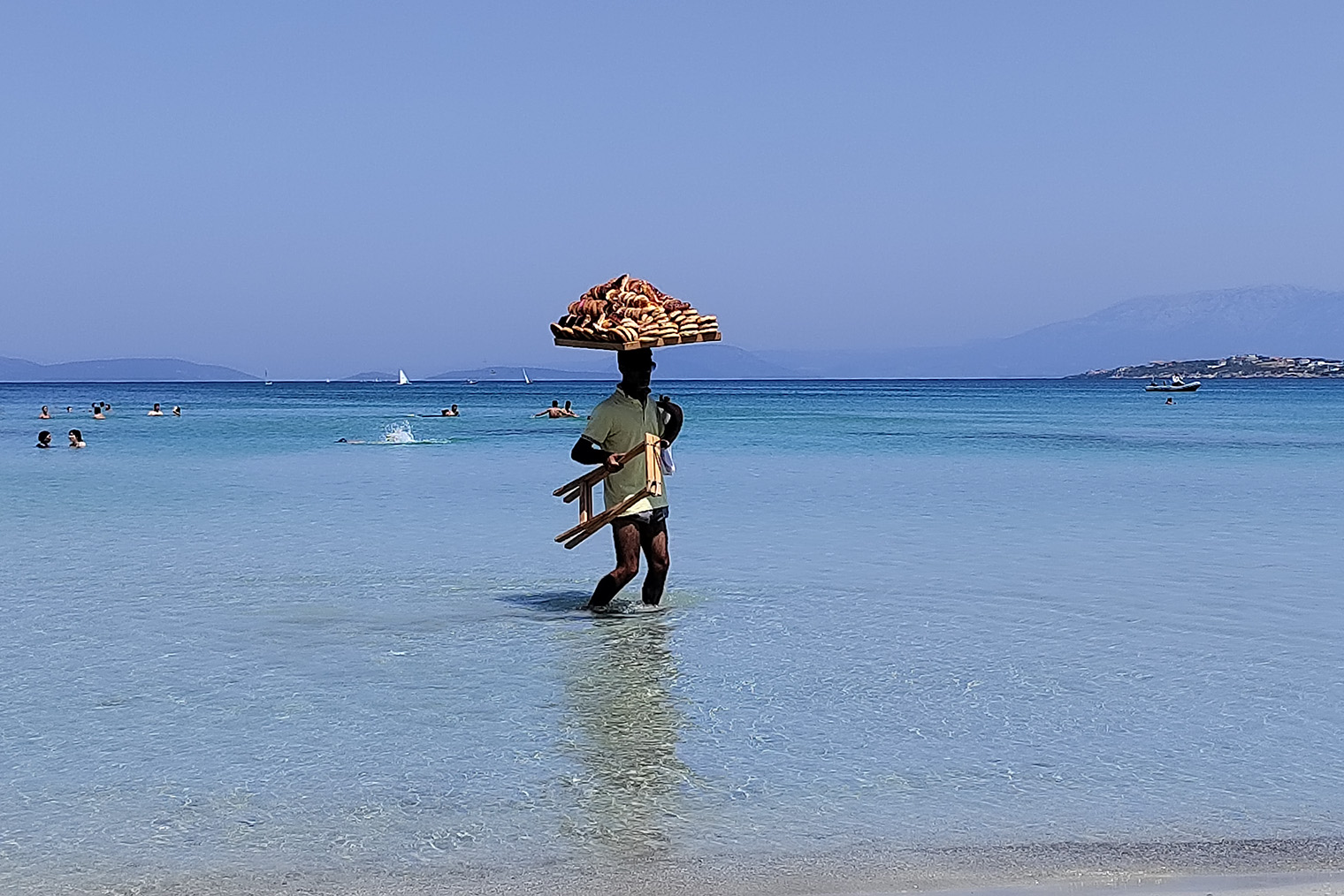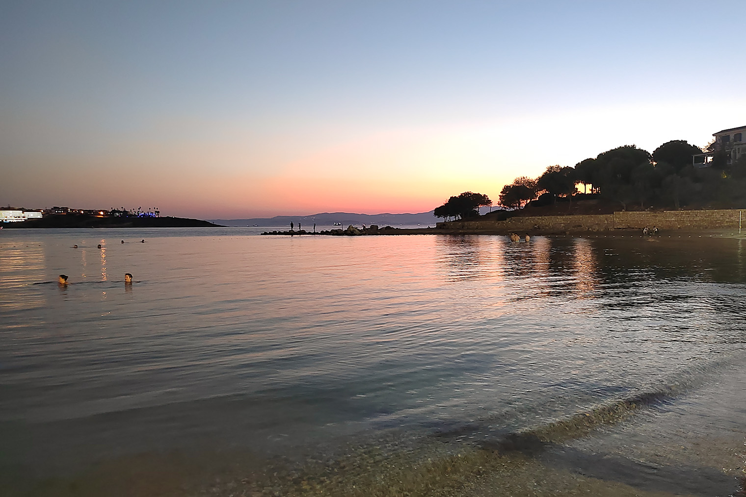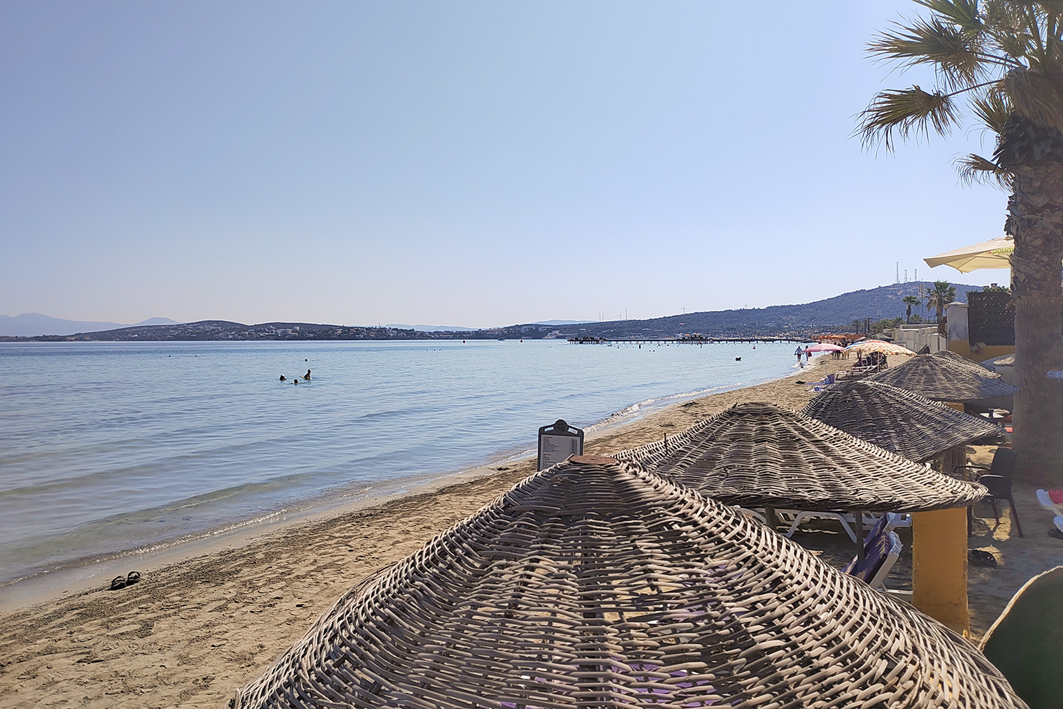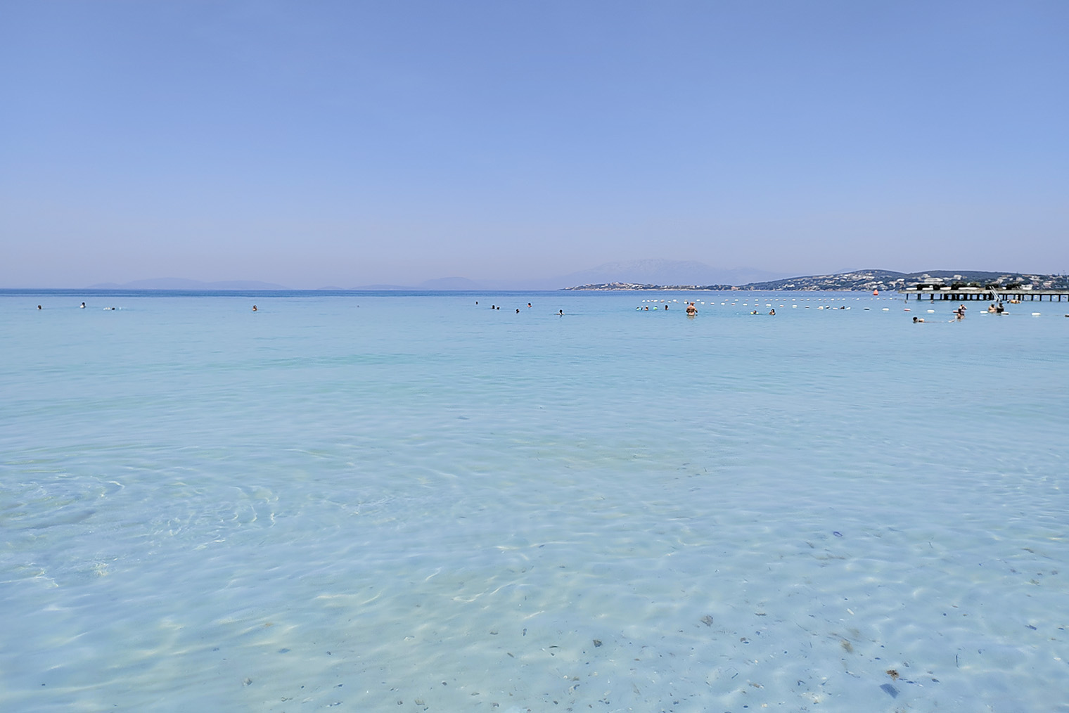 Мы с друзьями отдыхали в Чешме в пик туристического сезона — с 22 по 29 июля. Наряду с августом июль — самый знойный месяц на курорте. Мы стойко переносили жару и, бывало, целый день проводили на пляже. Но иногда приходилось прятаться в кафе или гостинице. Море у самого берега порой казалось даже слишком теплым, навскидку — больше 30 градусов. Я часто уплывала на глубину, где было комфортнее, чтобы хоть немного охладить сгоревшие плечи.