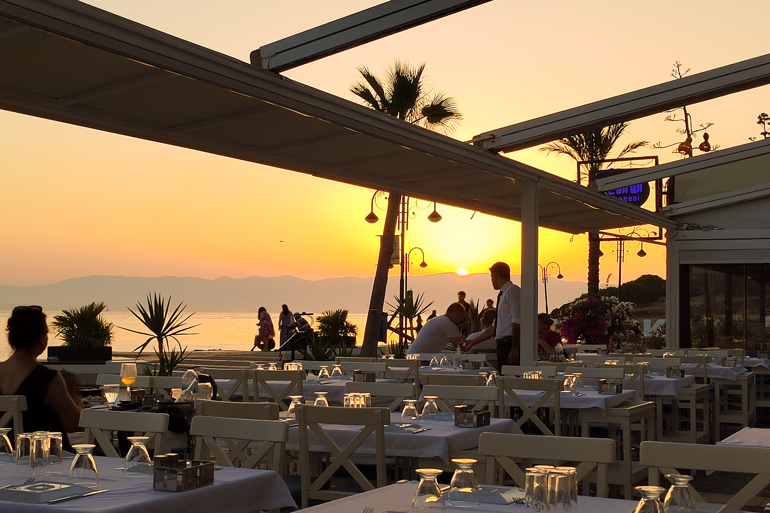 На набережной Чешме хватает ресторанов и кафе. Нам понравилось в Cafe De Lucchi, расположенном рядом с пляжем «Текке». Там мы отмечали юбилей подруги и пробовали ракы — турецкую анисовую водку. У нее специфический вкус — напоминает лекарство. Двумя годами ранее я дегустировала этот напиток в Стамбуле и пообещала себе больше никогда к нему не притрагиваться. Но турки настолько любят ракы, что я дала ей второй шанс. Правда, немного схитрила — заказала к ней «Спрайт». Местные же ни с чем ракы не смешивают.