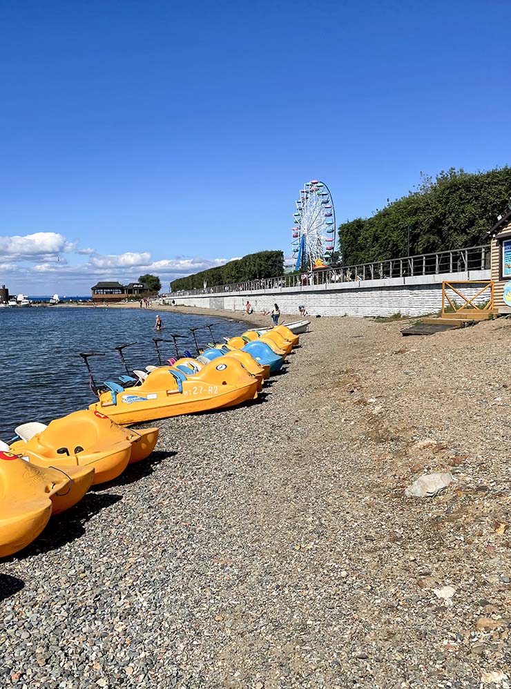 В бухте Триозерье есть три небольших озера, которые отделяет от сопок тонкая полоска пляжа. Вода прохладная: здесь часто дуют ветра. Но это именно то место, которое вспоминают все туристы. От города Находки до Триозерья можно доехать на такси за 1 800 ₽.