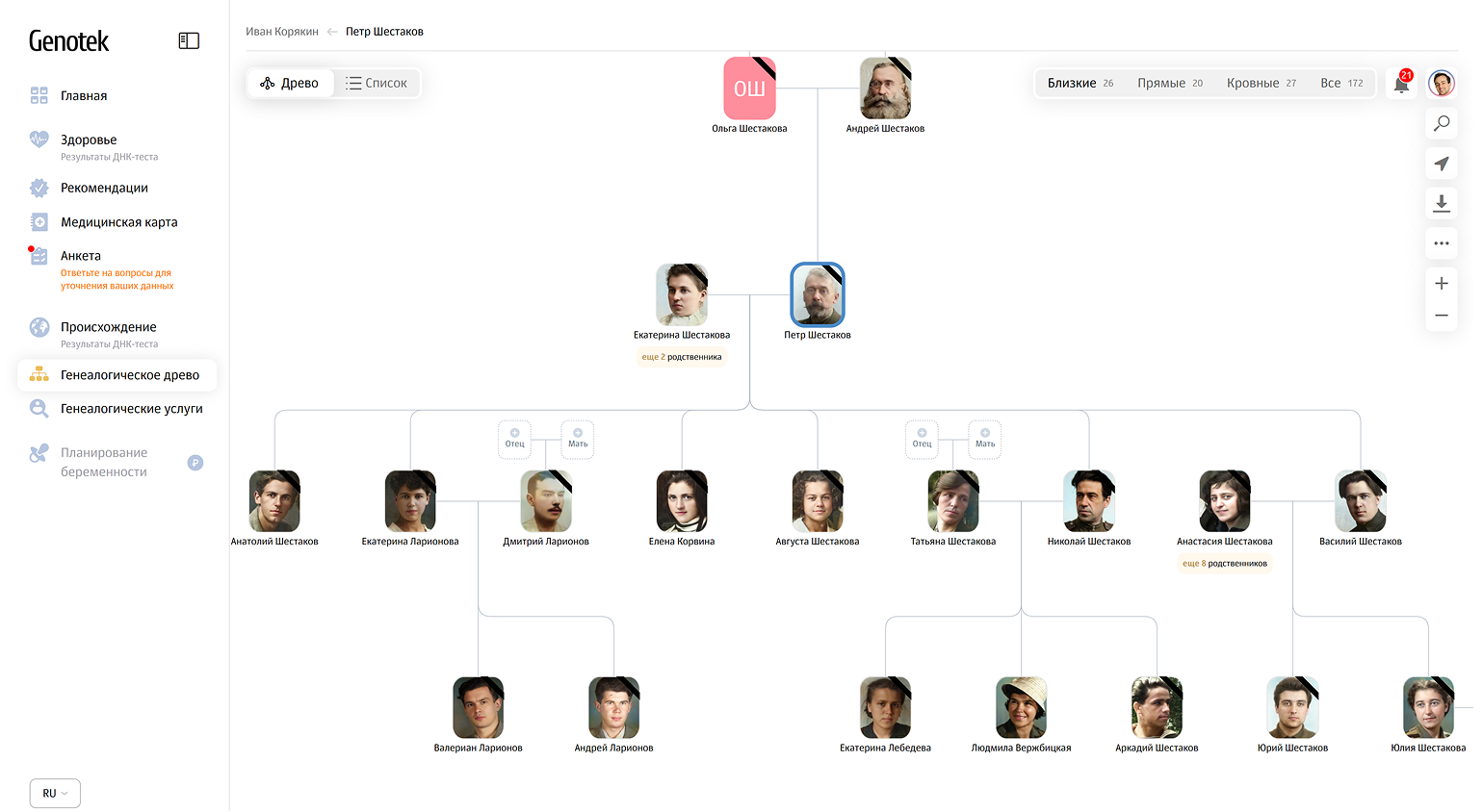 - Онлайн-сервисы — Familio, Famiry, MyHeritage (недоступен в России) — как правило, проще, зато позволяют делиться данными с близкими и находить новых родственников через совпадения в деревьях.