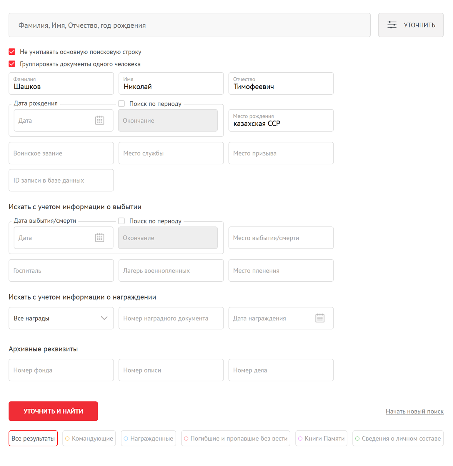 - поисковик Росархива ГИС УИАД — система пополняется заголовками дел из крупных федеральных архивов;