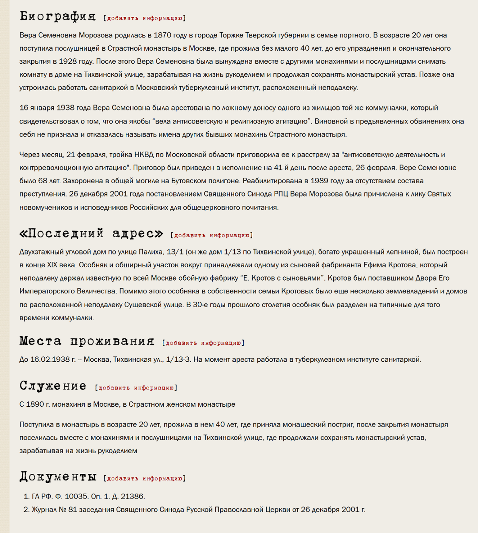 | Дореволюционные архивные документы | • «Поиск по архивам» от Яндекса • Метрические книги Москвы и Московской губернии примерно с середины 18 века от «Генотека» • Справочники по церковно-приходскому делению |