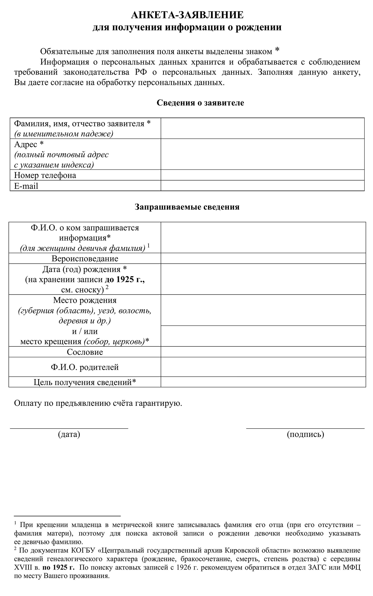 Настоящим письмом гарантирую оплату услуг архива в полном объеме. Ниже прикрепляю копии документов, подтверждающих родство.