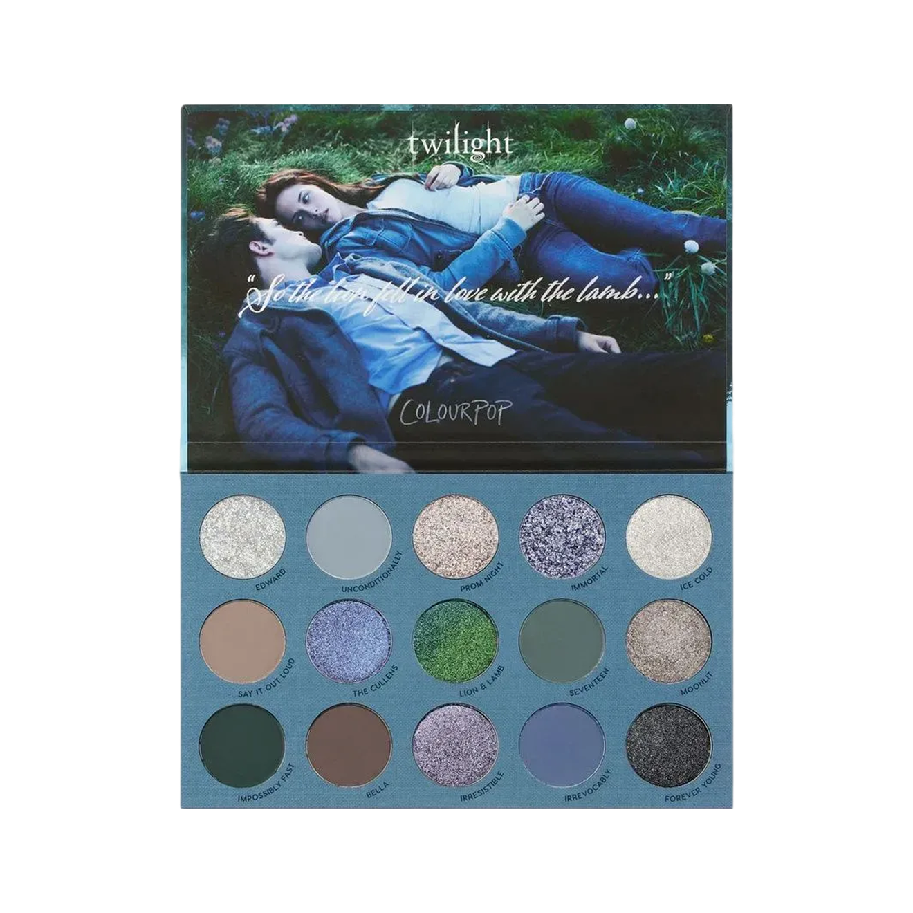 Сверкать как Эдвард и бледнеть как Белла — люблю такие палетки за холодную гамму: серые, синие и зеленоватые оттенки здесь наслаиваются без грязи и сюрпризов. Финиши разные — матовые, металлик, глиттер и матовые с деликатным сиянием. Палетка подойдет и для легкой дневной дымки, и для вечернего вампирского макияжа.