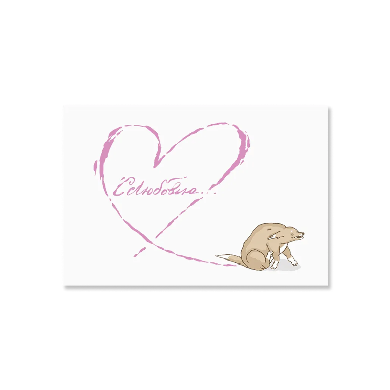 Милая и смешная открытка из коллаборации «ШКЯ» и бренда одежды и аксессуаров Barking Store. Товары из линейки «С любовью» поддерживают приют для животных в Новосибирской области: часть прибыли от их продажи направляют на его работу.