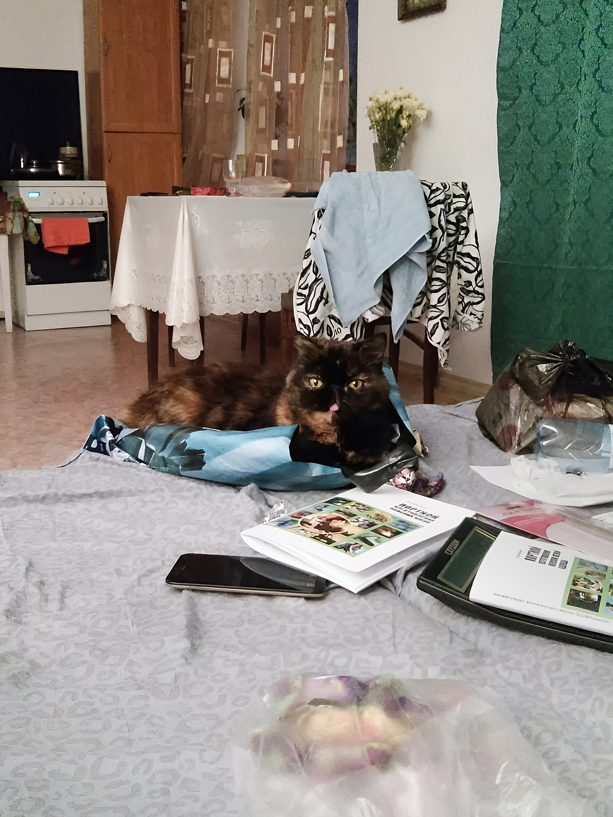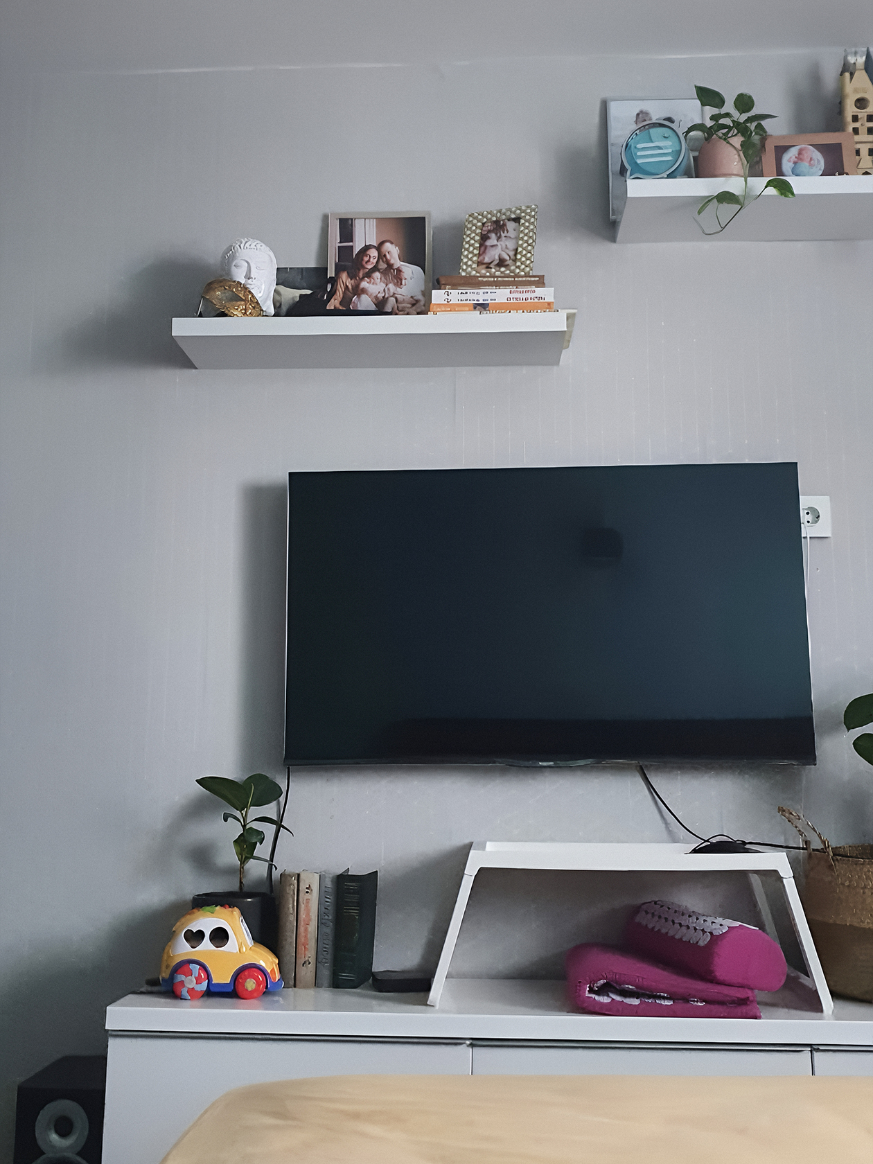 Уже переехав, мы продолжали ремонтировать квартиру и обустраиваться. Длилось это почти четыре года — по возможности все делали сами. Большую часть мебели перевезли из своей комнаты у родителей, что-то отдали бабушка с мамой. Мне позволили забрать с работы древний кухонный стол. Телевизор приобрели в кредит за 48 000 ₽, как только вернулись из поездки по Европе, тогда как раз подскочил курс. Холодильник стоил около 30 000 ₽, его подарила бабушка на новоселье. Тетя отдала старую плиту с духовкой. На стиральную машину мы потратили 12 000 ₽.