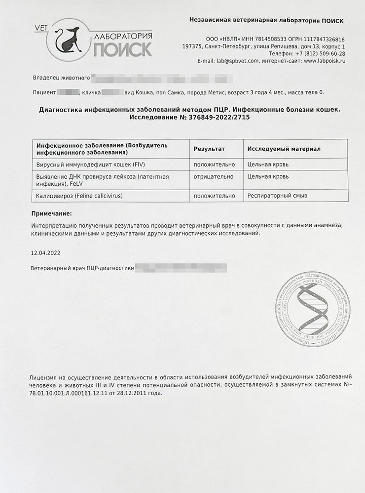 ПЦР используют, чтобы подтвердить диагноз. Исключить ВИК с его помощью нельзя. Прежде всего потому что в бессимптомной фазе в крови котика может быть мало вируса, и тогда распознать его не получится.