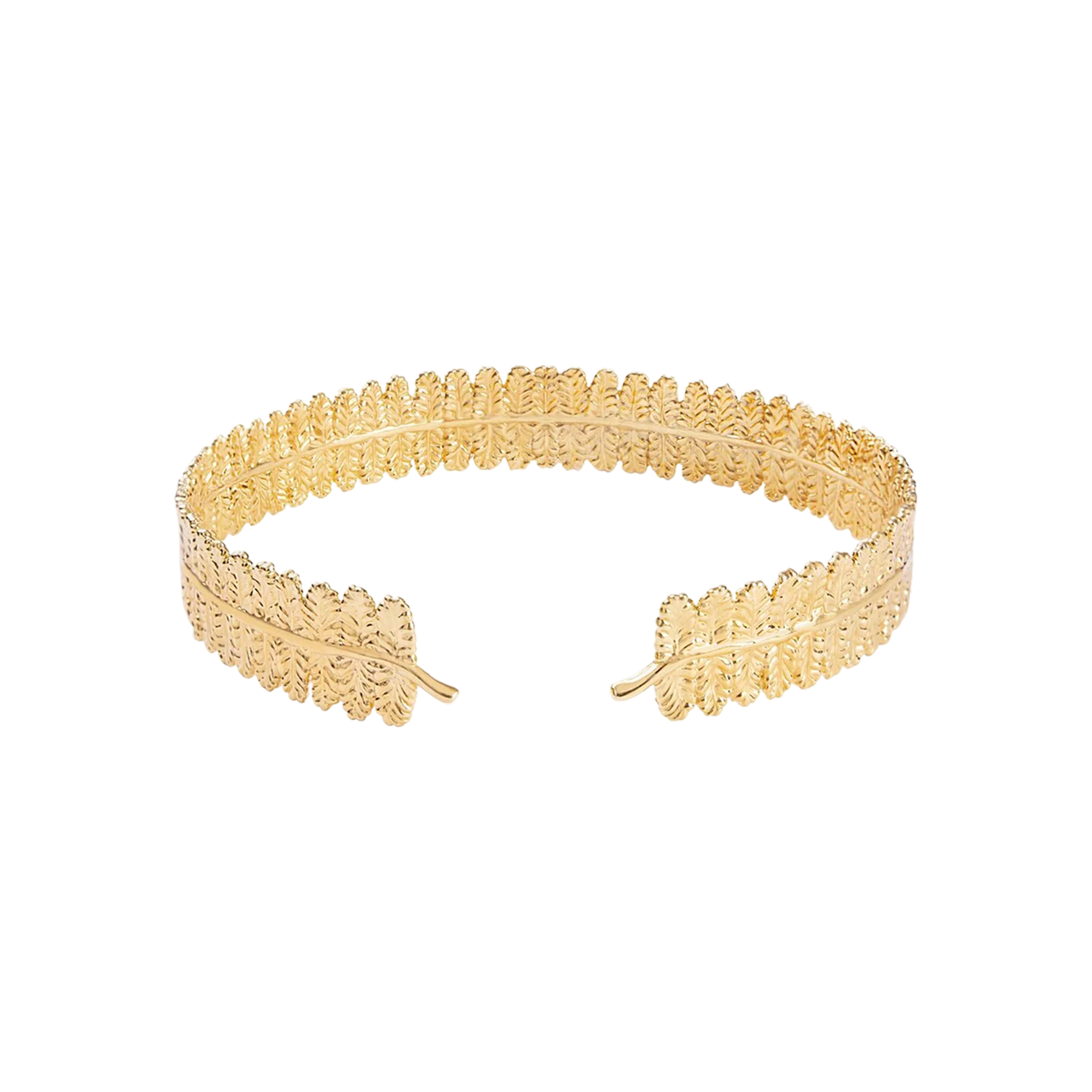 Офисное растение-старожил или древний маг? В коллекции «Аленький цветок» московская студия Klever помогла папоротнику раскрыть свою сказочную субличность, известную еще со времен славян-язычников. Чокер из ювелирной латуни покрыт золотом и без труда регулируется на шее