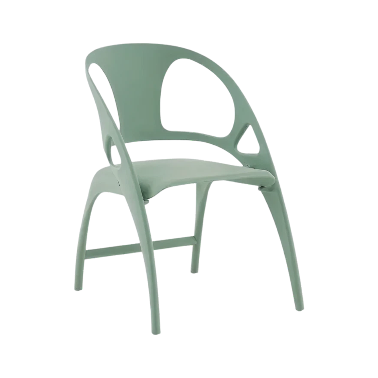 Плавный силуэт и округлая спинка делают стул визуально легким. Каркас из прочного полимера выдерживает нагрузку до 150 кг и не боится влаги, поэтому его можно поставить на террасе или балконе. Есть несколько цветов: от облачного белого до приглушенного терракотового