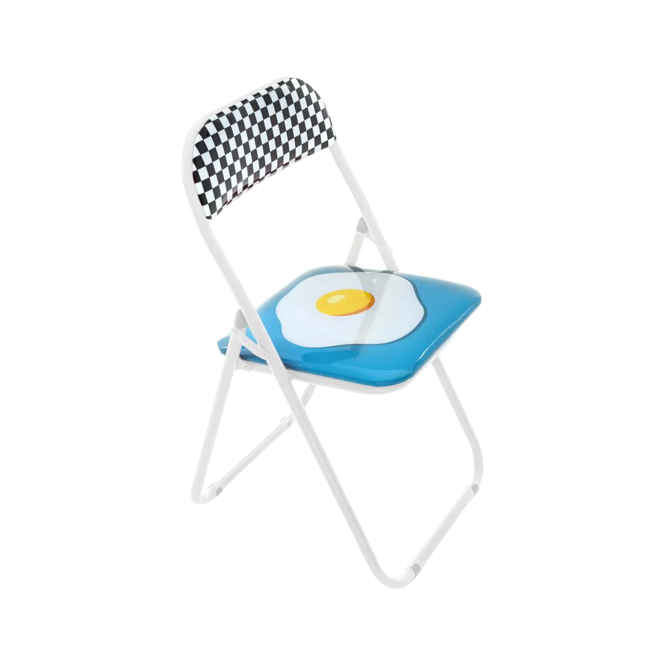 Итальянский бренд Seletti известен ироничным подходом и коллаборациями с современными художниками. Этот складной стул разработан совместно со студией дизайна Studio Job и входит в одноименную коллекцию бренда. В ней — шесть вариантов оформления с графичными принтами в стиле поп-арт