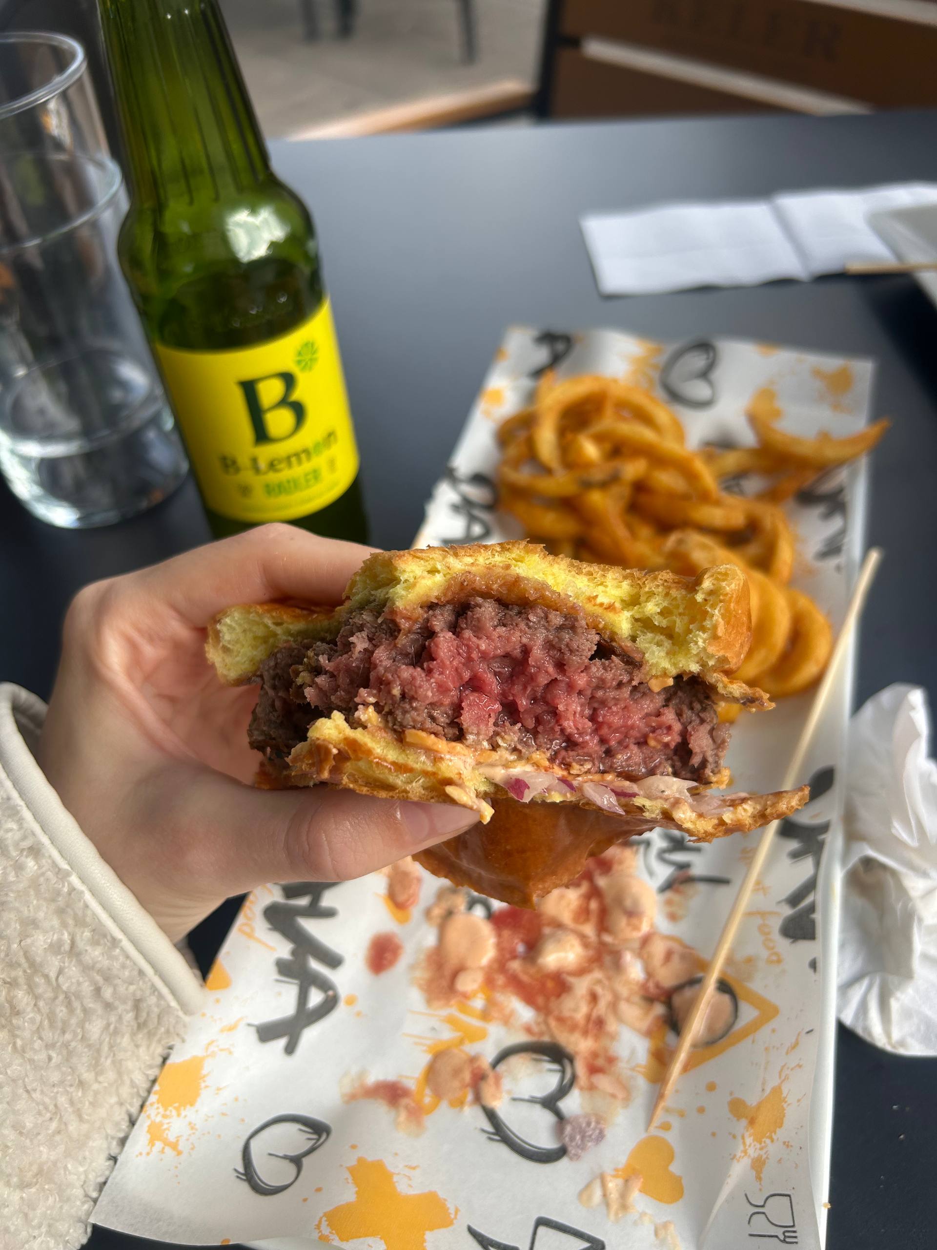 Иногда мы едим бургеры, не перестану повторять, какое вкусное тут мясо. Бургер с картошкой стоит 10-15 евро.