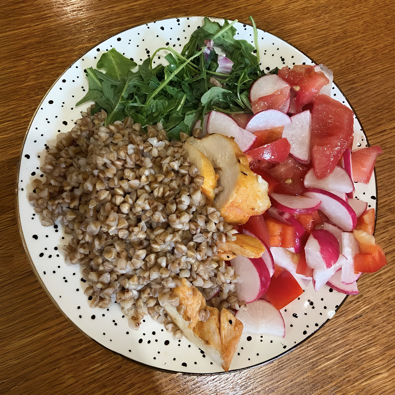 Также пару раз в месяц, когда не успеваю приготовить себе еду или забываю взять контейнеры, могу пообедать где-то возле офиса. Мне нравится «Теремок», там есть ощущение домашней еды, плюс можно не брать соус. Мой заказ всегда одинаковый — гречка и куриная грудка.
