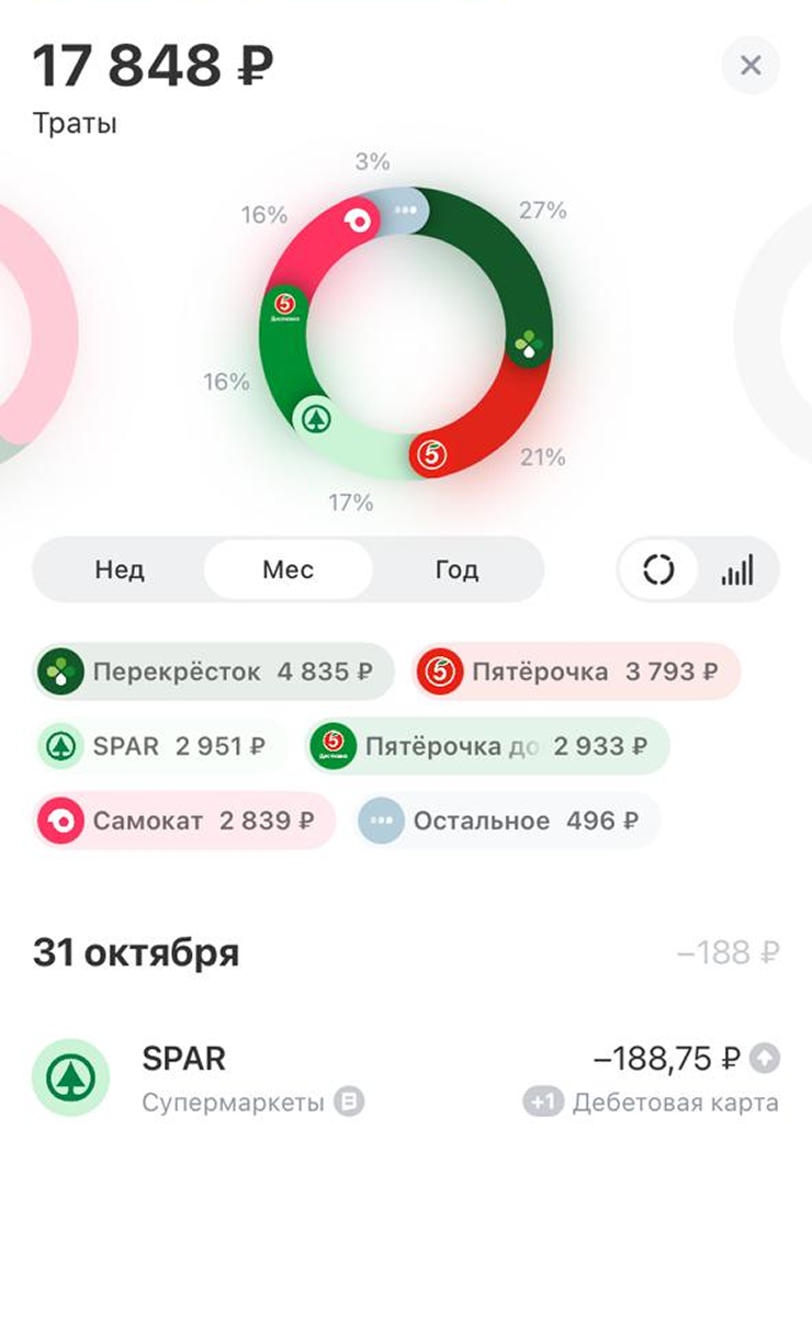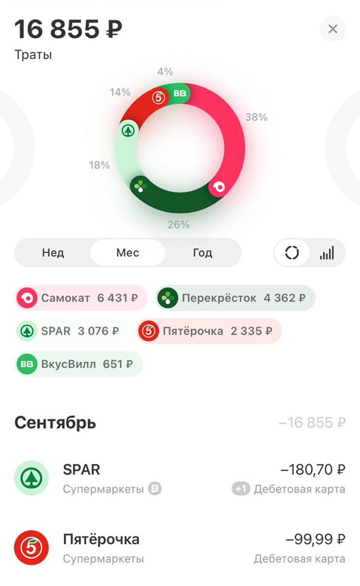 Раньше на еду я тратила сильно больше: еще в начале этого года могло доходить до 50 000 ₽ в месяц. Пользовалась только доставками, чтобы не носить тяжелые пакеты из магазинов. «Самокат» нравился своей скоростью. Еще делала заказы в «Яндекс Лавке» — казалось, что продукты там лучше. Думаю, на это повлияли активная реклама, удобство и дизайн приложения.