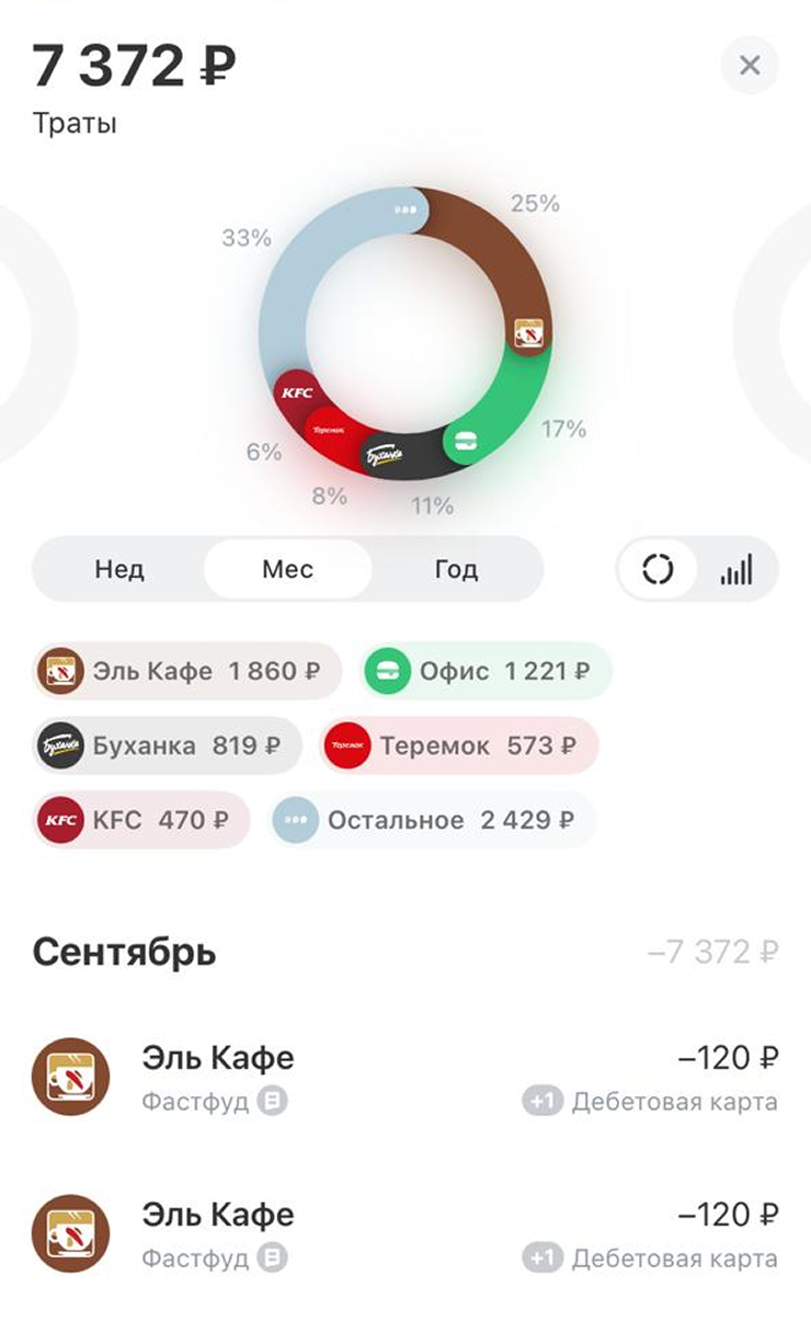 Траты на кафе, рестораны и готовую еду