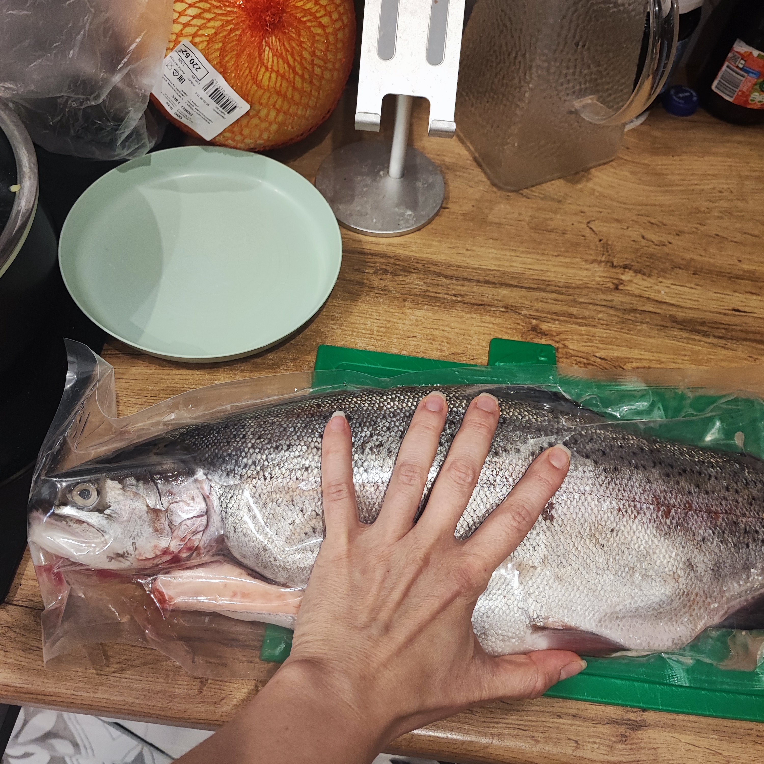На продукты уходит примерно 33-35 тысяч в месяц. Готовлю я сама, редко муж. Полуфабрикаты покупаю иногда на озон, иногда в Мираторг, в сети магазинов Красная икра, делаю сама.