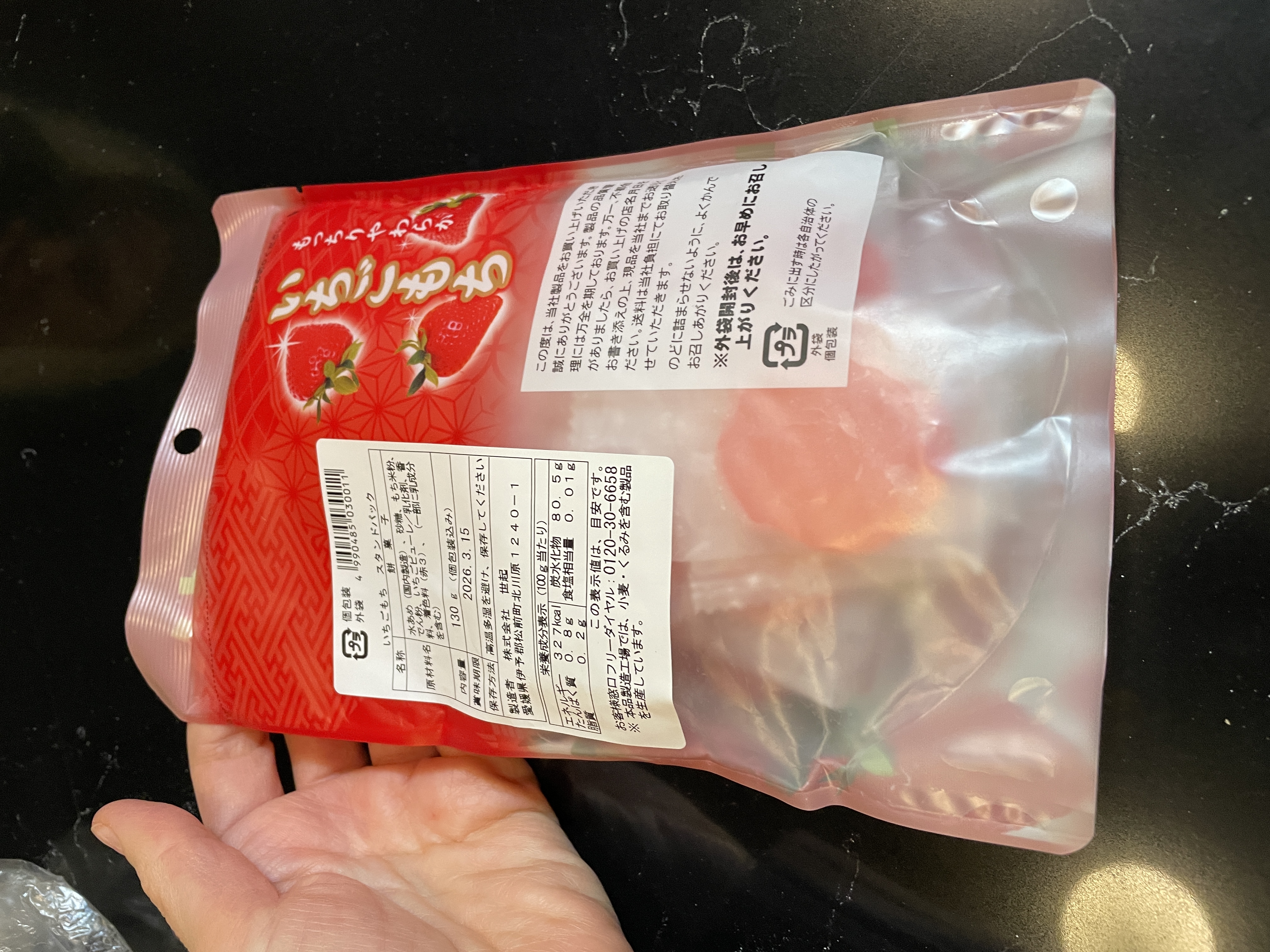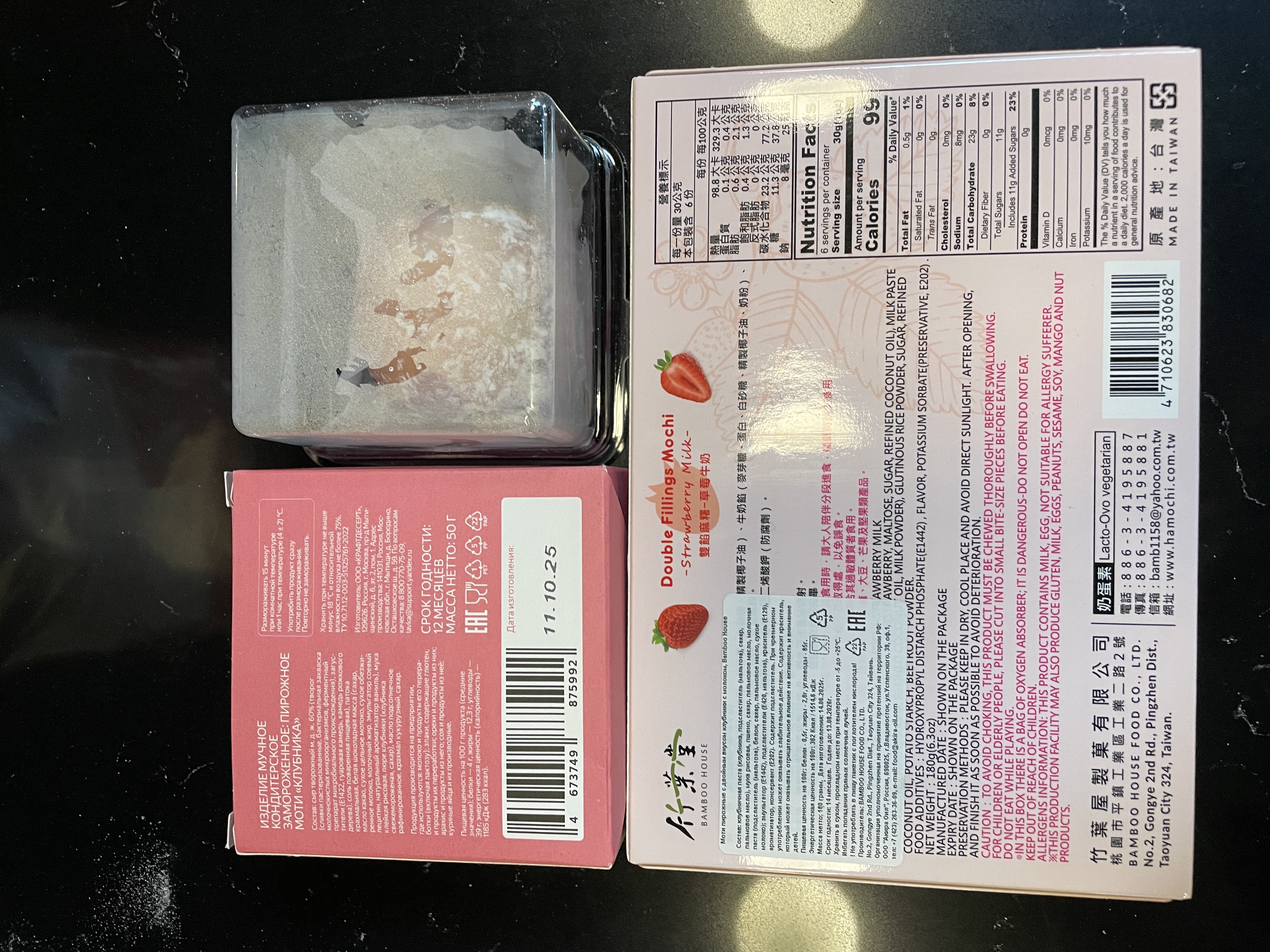 Strawberry Mochi, Корея. Вариант корейского производителя оказался просто желейной конфеткой, которые любят употреблять в Азии. Хотя сейчас и современная молодежь, и дети все чаще просят купить подобное. Состав странный, вкус химически клубничный. Условно мармелад, а не моти.