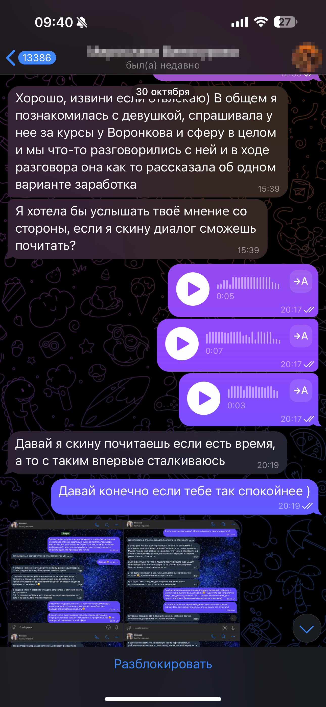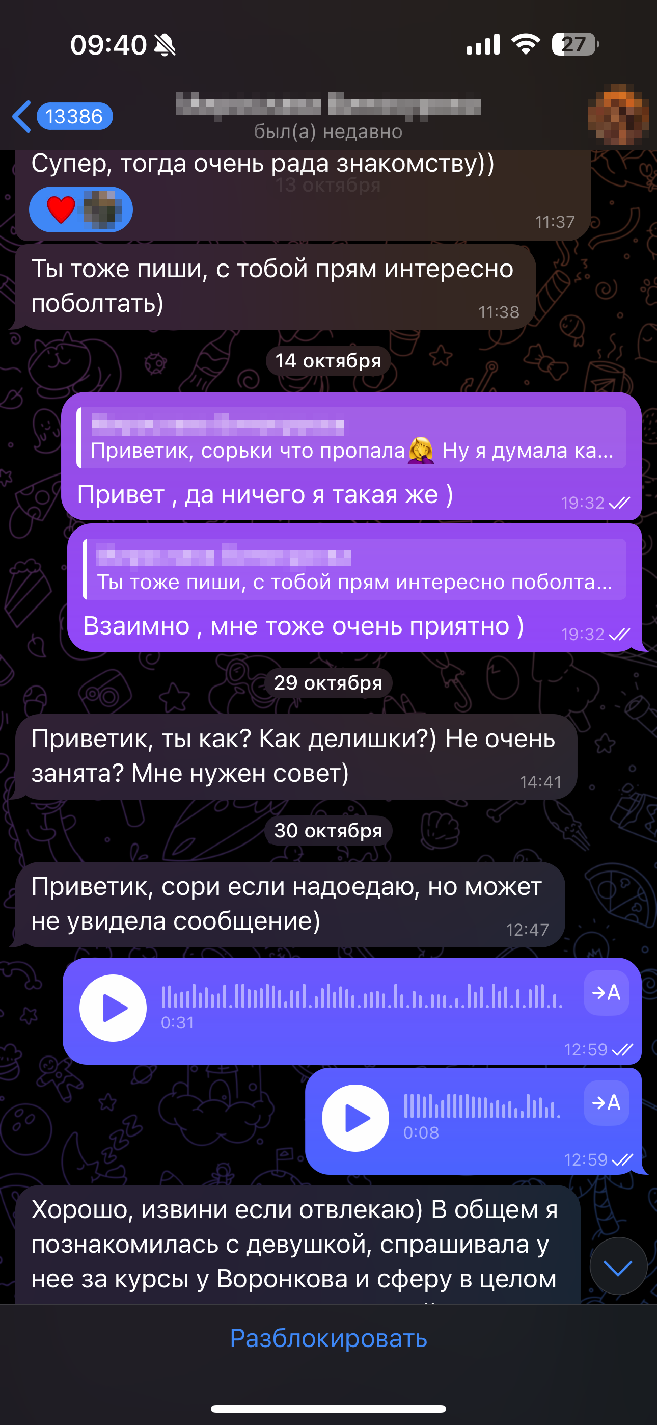 Свою дорогую собеседницу я заблокировала, а с вами делюсь дабы вы не попали в эту ситуацию.