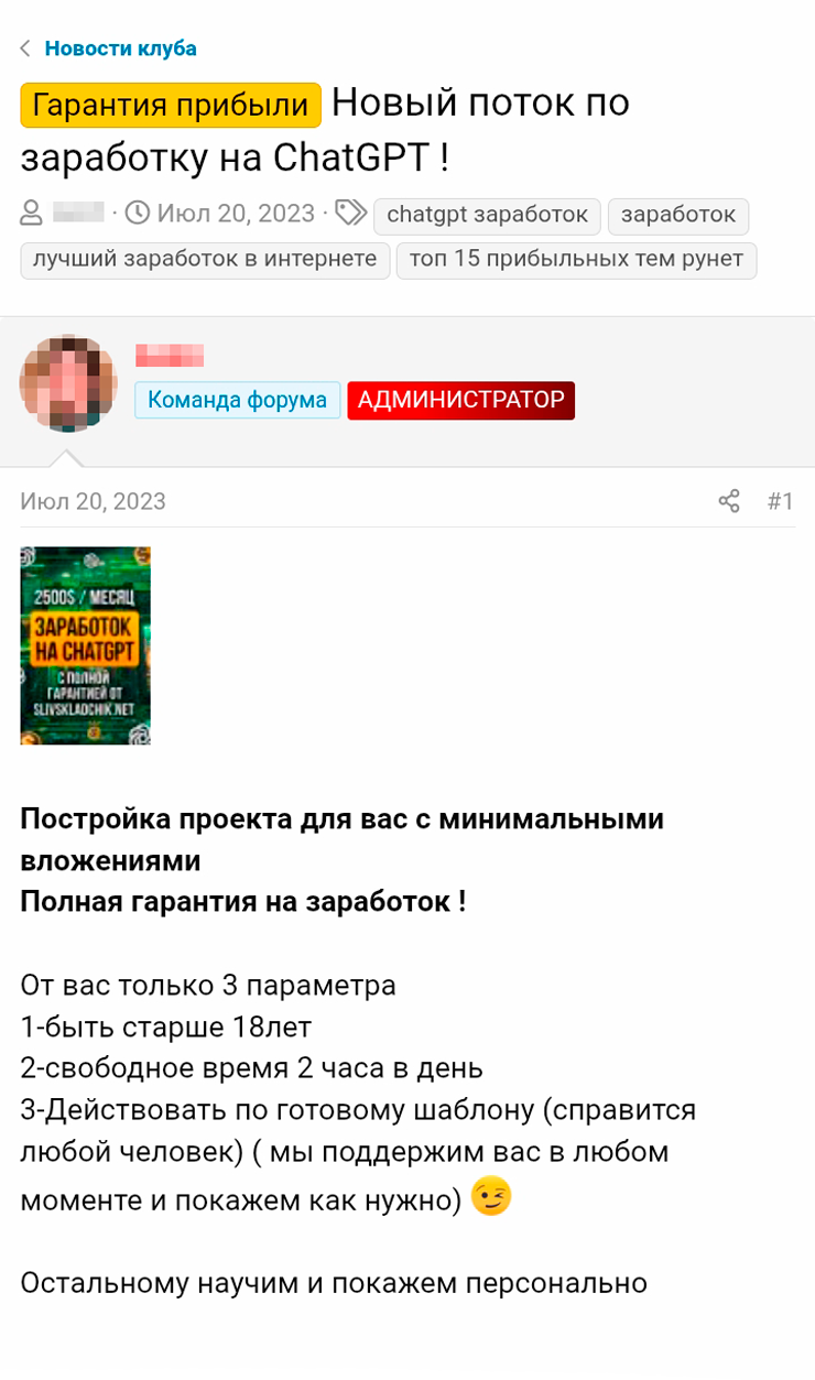Гарантированного заработка в интернете не существует. Ни «пассивного дохода за восемь дней», ни «2 500 $ в месяц стабильной прибыли». Легальный рынок так не работает. А когда к обещанию добавляют хайповую вывеску вроде «заработка на ChatGPT», это не делает предложение реальнее — только привлекательнее.