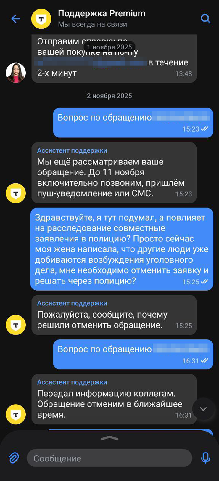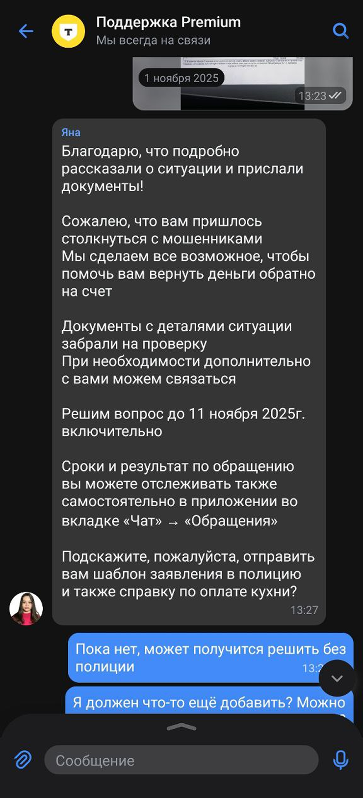 В тот момент в чате пострадавших написали сообщение о том, что покупатели вернули деньги через банк. У отправителя сообщения был Сбер. Я платил за кухню картой Т-Банка и решил проверить этот способ.