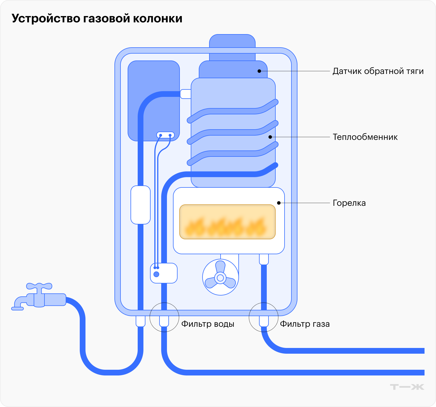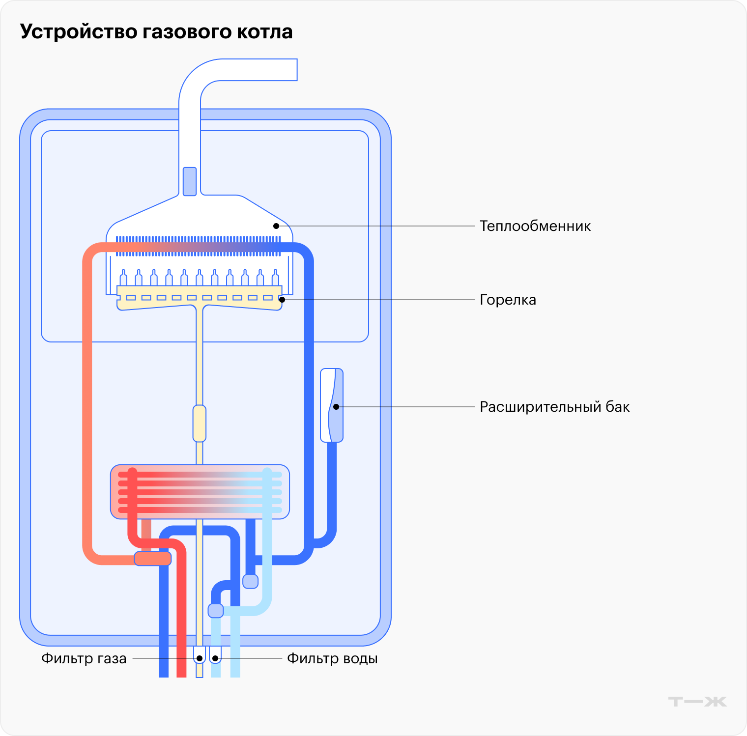 - чистят теплообменник от накипи и сажи;