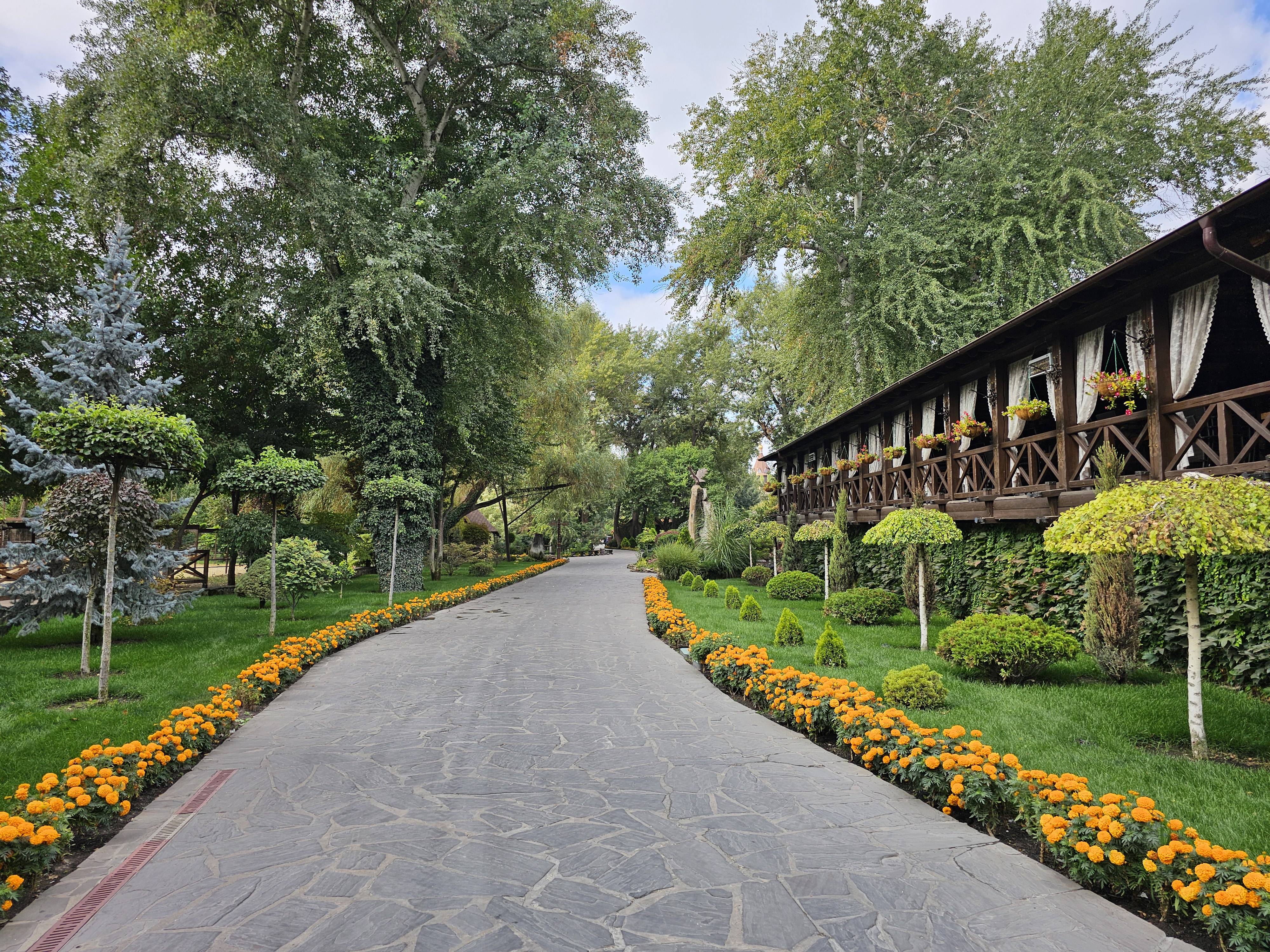 Мы выехали ночью. Фур мало, полиции тоже, можно ехать более-менее спокойно. Первая остановка — Каменск-Шахтинский, парк Лога. Очень красивое место, которое рекомендую посетить всем, тем более что вход бесплатный. После прогулок по парку поехали в Ростов-на-Дону, заселяться в гостишку. Гостишка очень комфортная, на мой взгляд одна из лучших в Ростове, расположена недалеко от трассы. Там мы отдохнули, переночевали, в стоимость номера был включен завтрак шведский стол, после чего тронулись дальше. Рядом с гостишкой — прекрасная и недорогая шашлычка. Много видов шашлыка, есть самовывоз и доставка. Шашлык укладывают в контейнер с луком и соусом, очень вкусно.