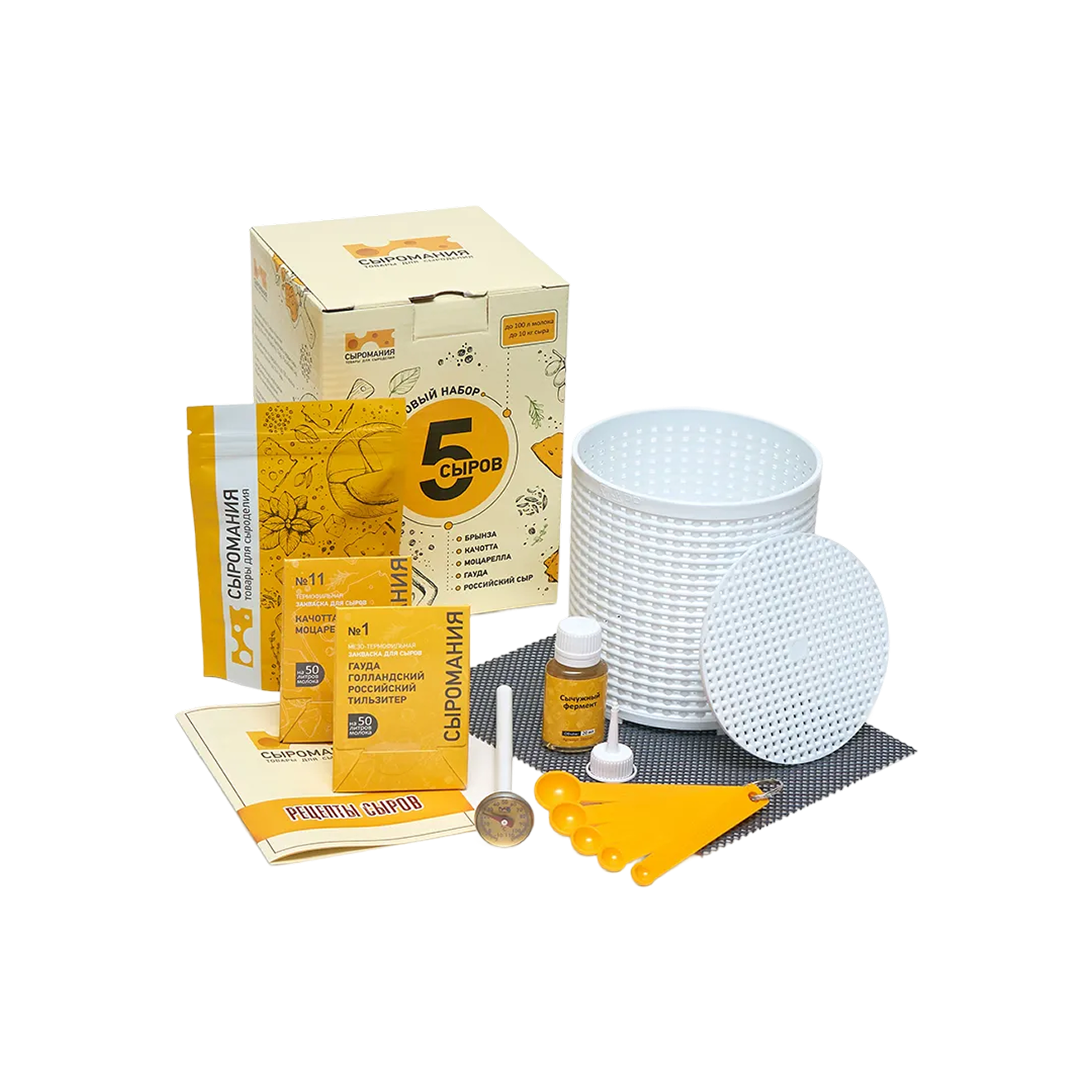 Подойдет кулинарным энтузиастам, которые уже опробовали все рецепты Гордона Рамзи и блогеров из TikTok. В составе — закваска и инвентарь, чтобы сделать пять видов сыра. Кроме российского и брынзы можно приготовить голландскую гауду, итальянские качотту и моцареллу. Если подарите домашним этот сет, то вот неочевидная идея, чем заняться в первых числах января, — сделать собственными руками закуски для будущих посиделок