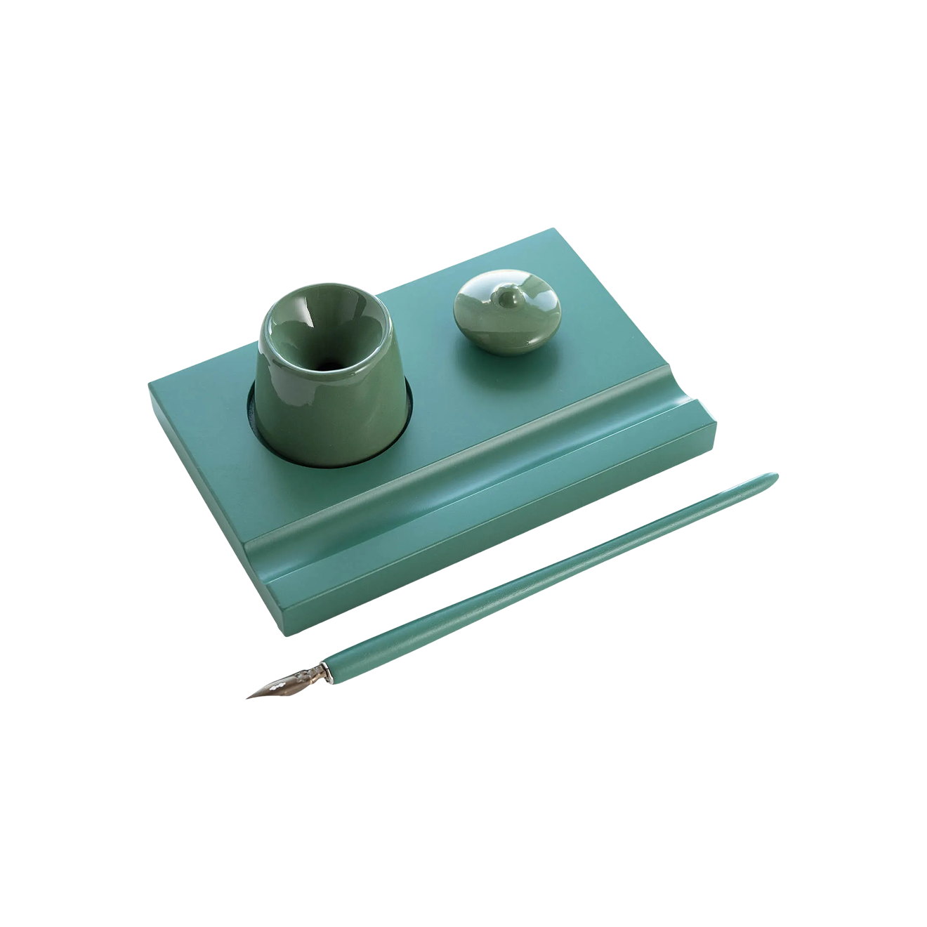 В керамическом наборе для каллиграфии — подставка под письменные принадлежности, чернильница с крышкой, перо и держатель для него. Можно подарить искателям нового хобби, которым школьные уроки чистописания не оставили после себя детскую травму