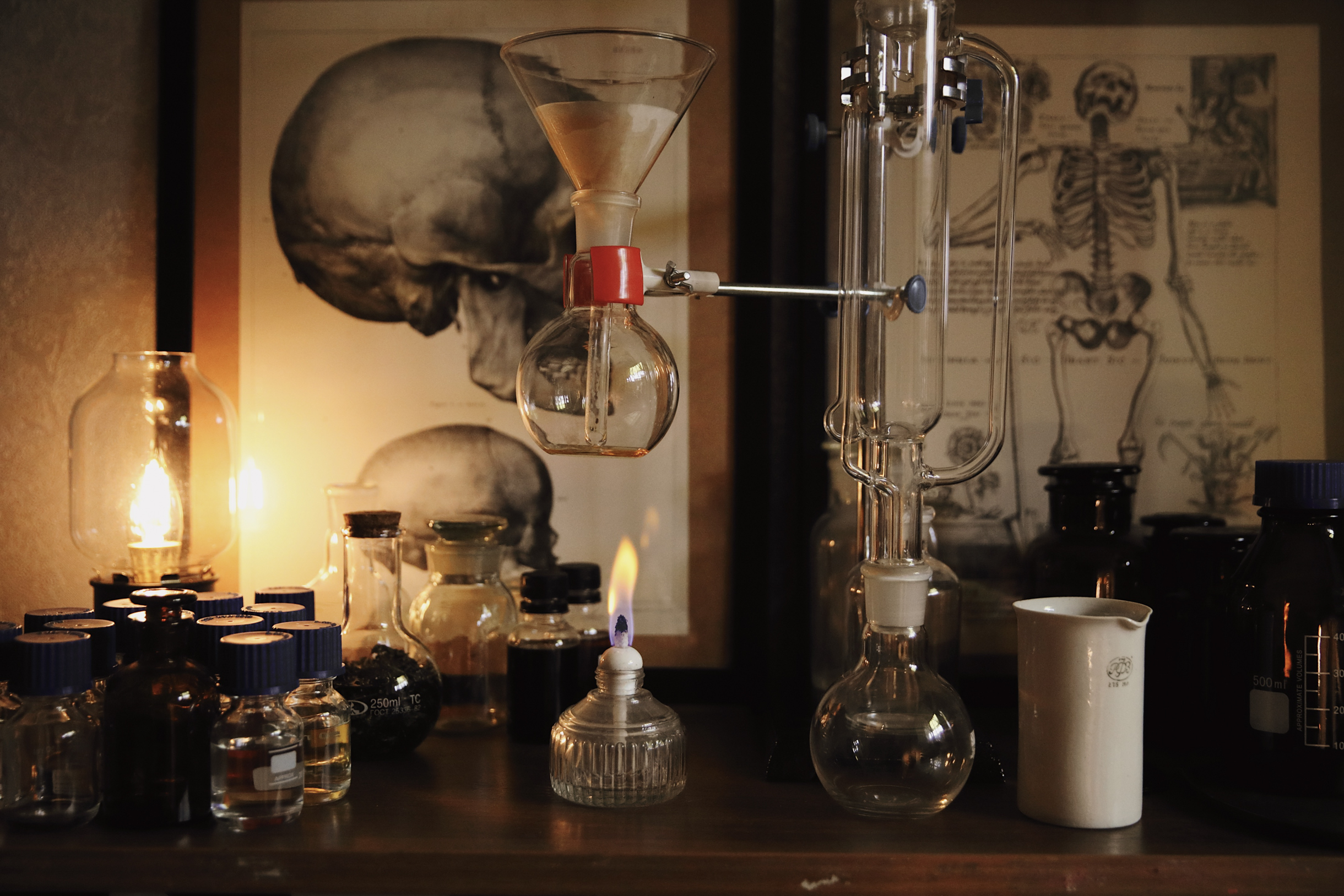 После этого жидкость переливаем в колбу и подключаем к экстрактору, который начинает нагреваться. Растворитель закипает, испаряется, проходит по трубкам и охлаждается. В экстракторе накапливаются душистые вещества — так получается абсолют. Затем его оставляют выстаиваться от трех недель до шести месяцев.