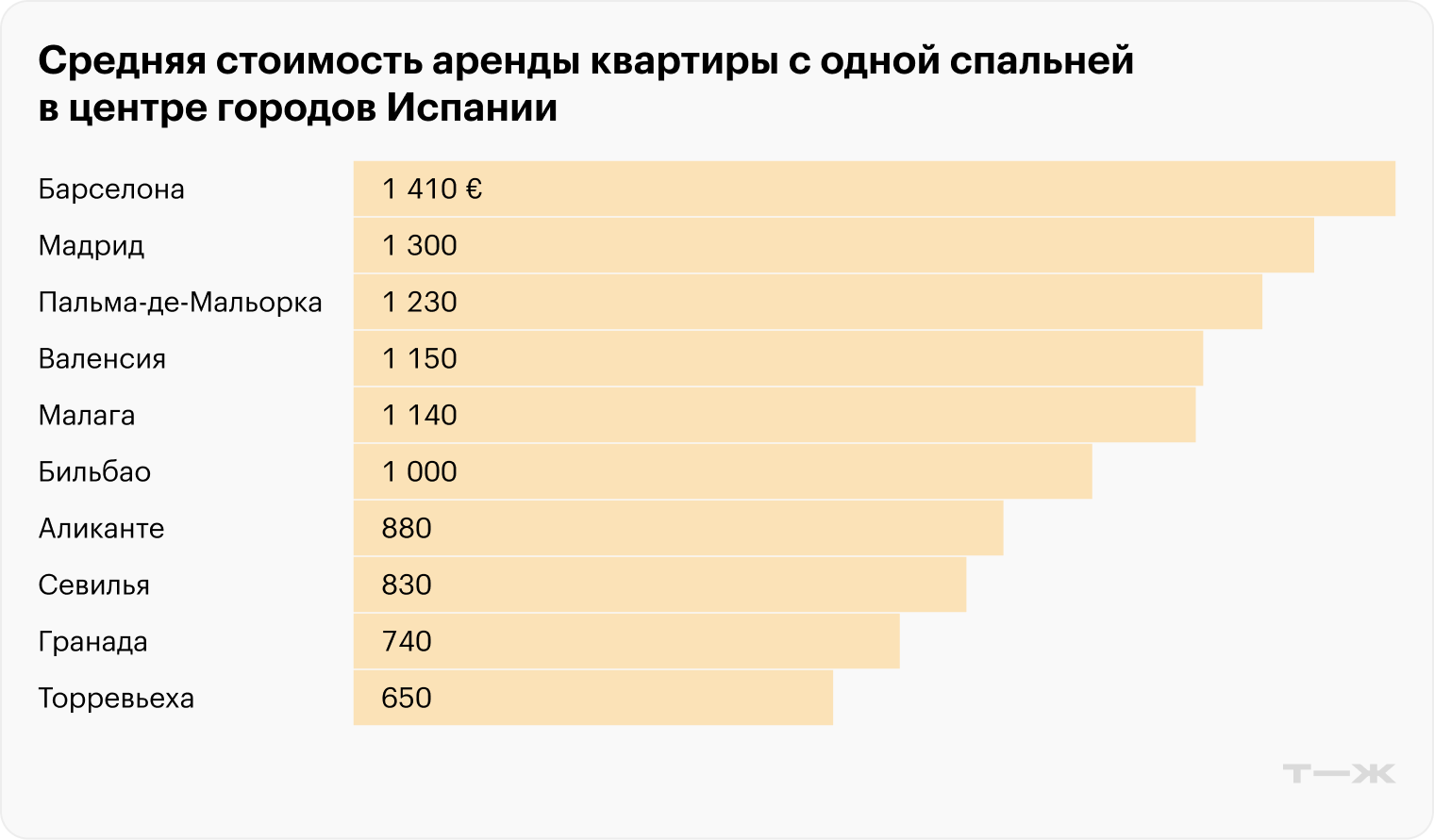 Стоимость аренды. Квартира с одной спальней в центре Мадрида в среднем обойдется в 1 300 € (118 131 ₽) в месяц, за его пределами — в 1 000 € (90 870 ₽). В Барселоне средняя стоимость квартиры с одной спальней в центре — 1 410 € (128 127 ₽), в районах подальше — 1 080 € (98 140 ₽). Такое же жилье в центре Валенсии в среднем стоит 1 150 € (104 501 ₽), в спальных районах — 860 € (78 148 ₽).