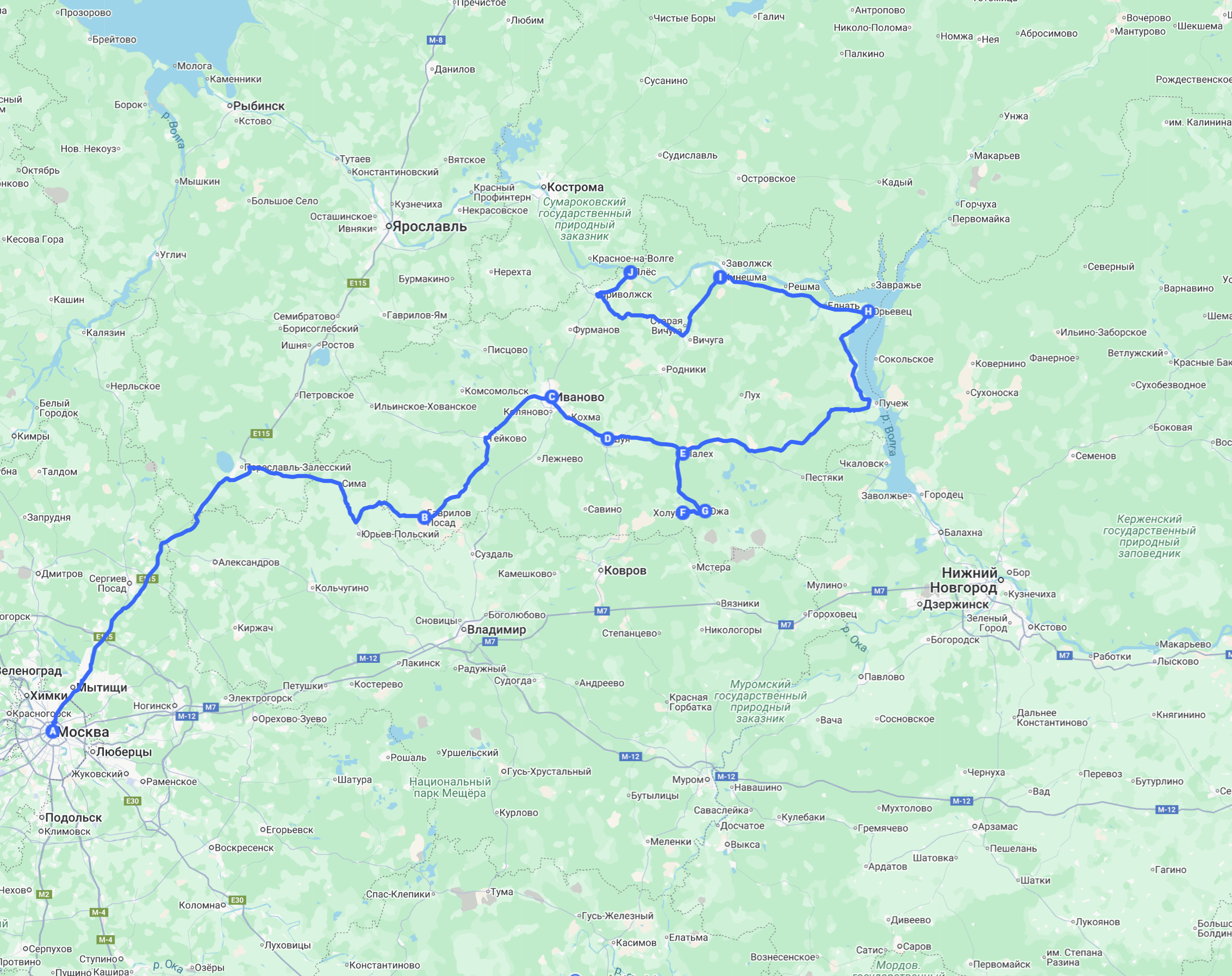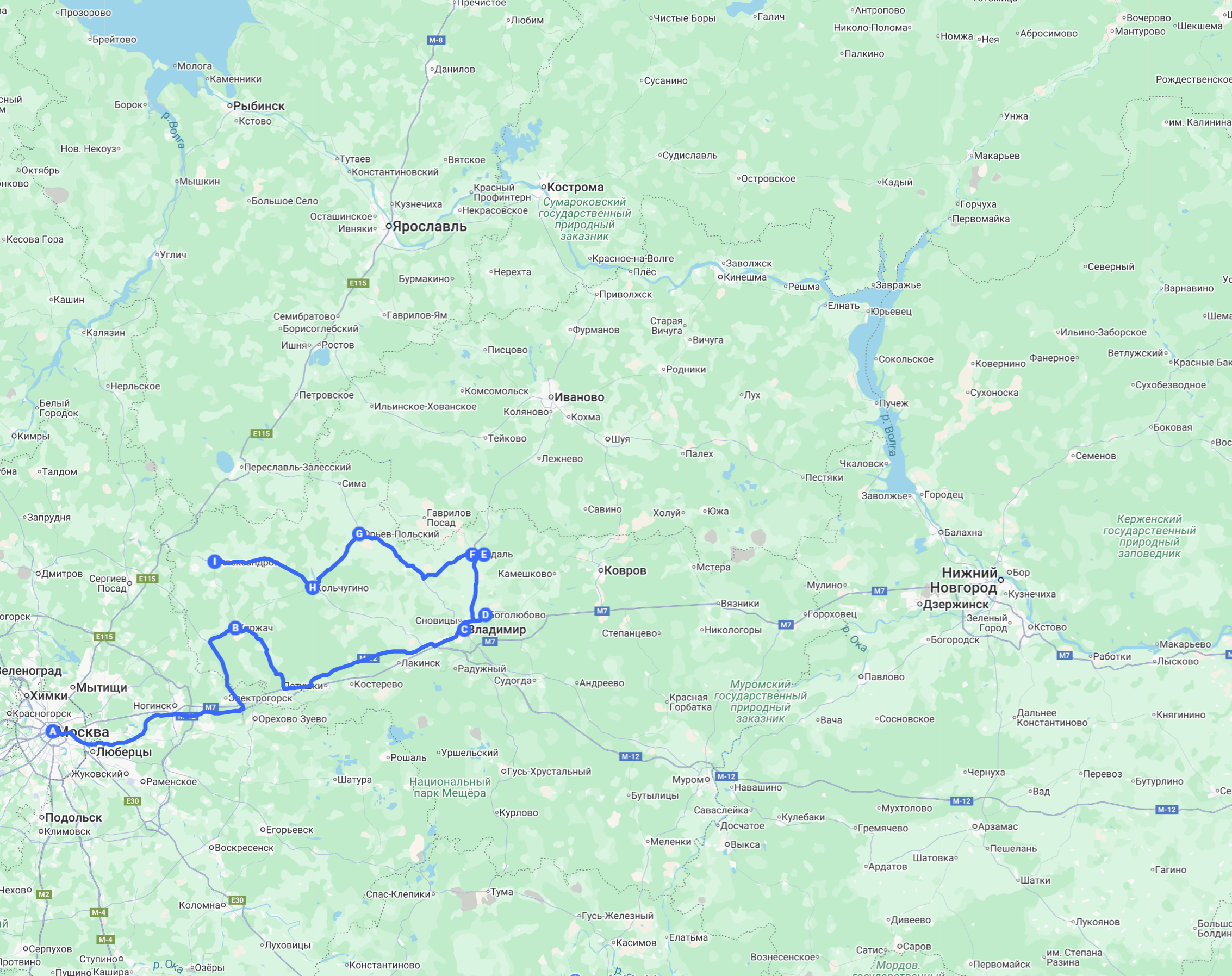 Карта нового Золотого кольца