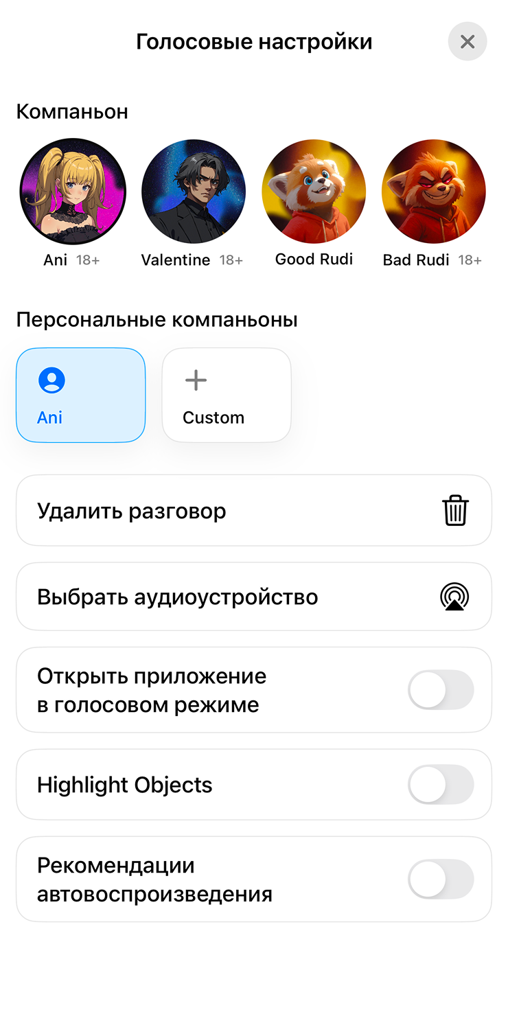 👱♀️ Превращаться в персонажа аниме. Эта функция называется «Компаньоны», сейчас она доступна только для подписчиков платной версии Grok в мобильном приложении на iOS и Android. Чтобы включить компаньона, откройте апп и нажмите на одного из четырех компаньонов: Ани, Валентайна, Хорошего Руди или Плохого Руди. Приложение начнет загрузку, после чего вы сможете нажать на персонажа.