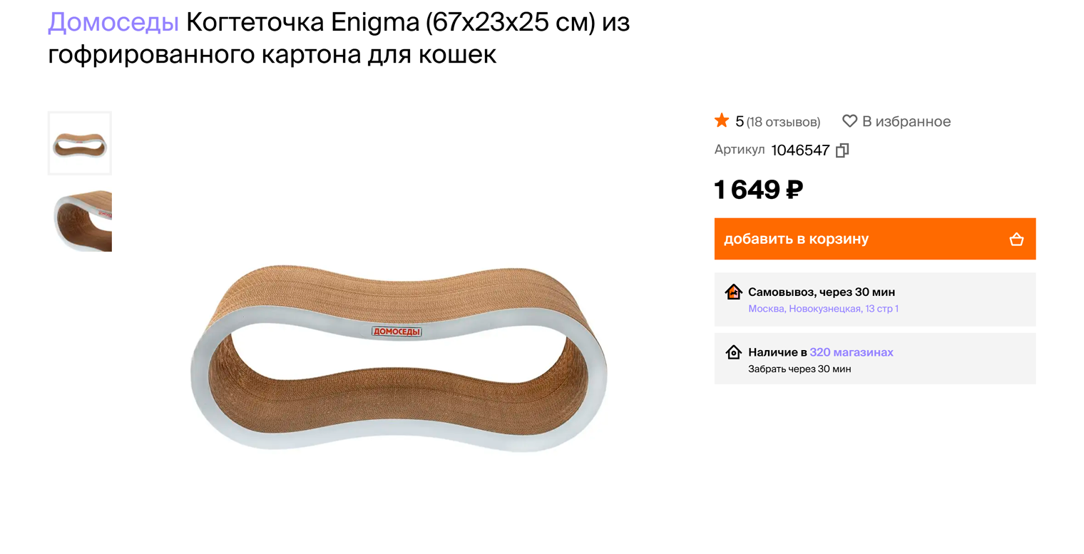 Следующим приобретением была когтеточка-столбик. Пуся к ней даже не подошла. Позже в книге Марины Жеребиловой «Котологика. О чем молчит кошка» я прочитала, что кошки точат когти по-разному. Я понаблюдала за Пусей и поняла, что она любит делать это полулежа. Тогда я купила когтеточку-волну из гофрокартона и наконец попала в цель.