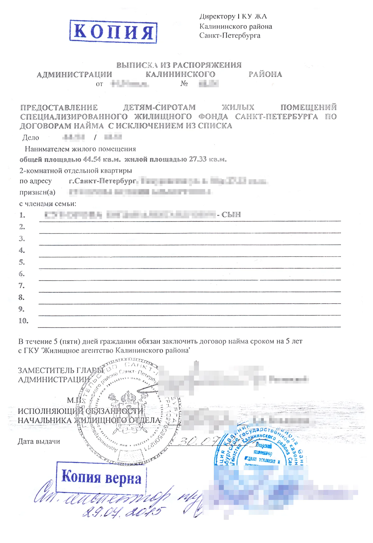 Как только договор подписан, с этого момента вы — законный наниматель. Право проживать в квартире — пожизненное и передается членам вашей семьи — даже при переезде или в случае вашей смерти.
