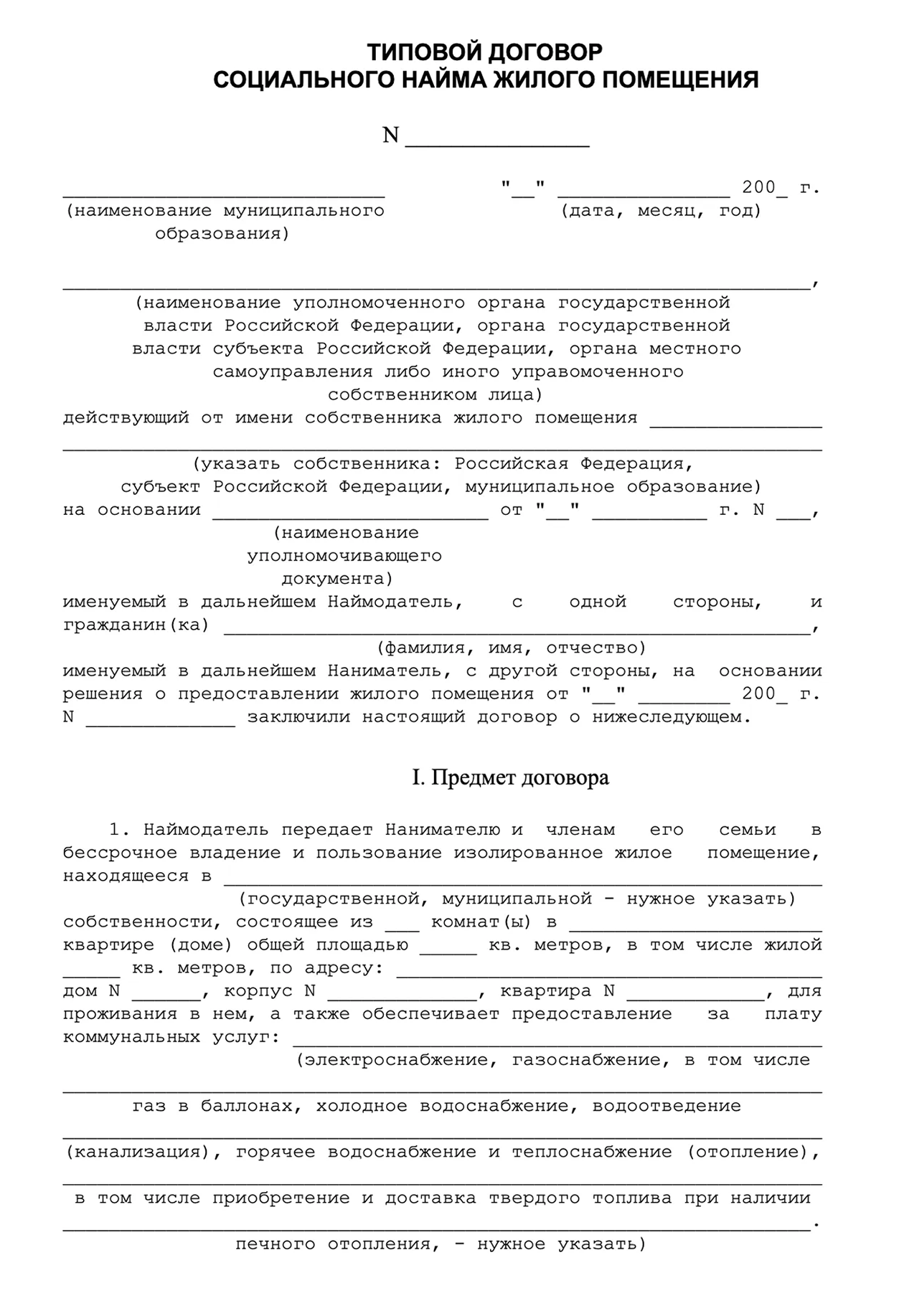 Договор бессрочный . Его нельзя заключить на определенное время, например на 5 или 10 лет. Даже если наниматель умрет или переедет, члены его семьи сохраняют право проживания. Договор прекращается только по желанию сторон или после приватизации.