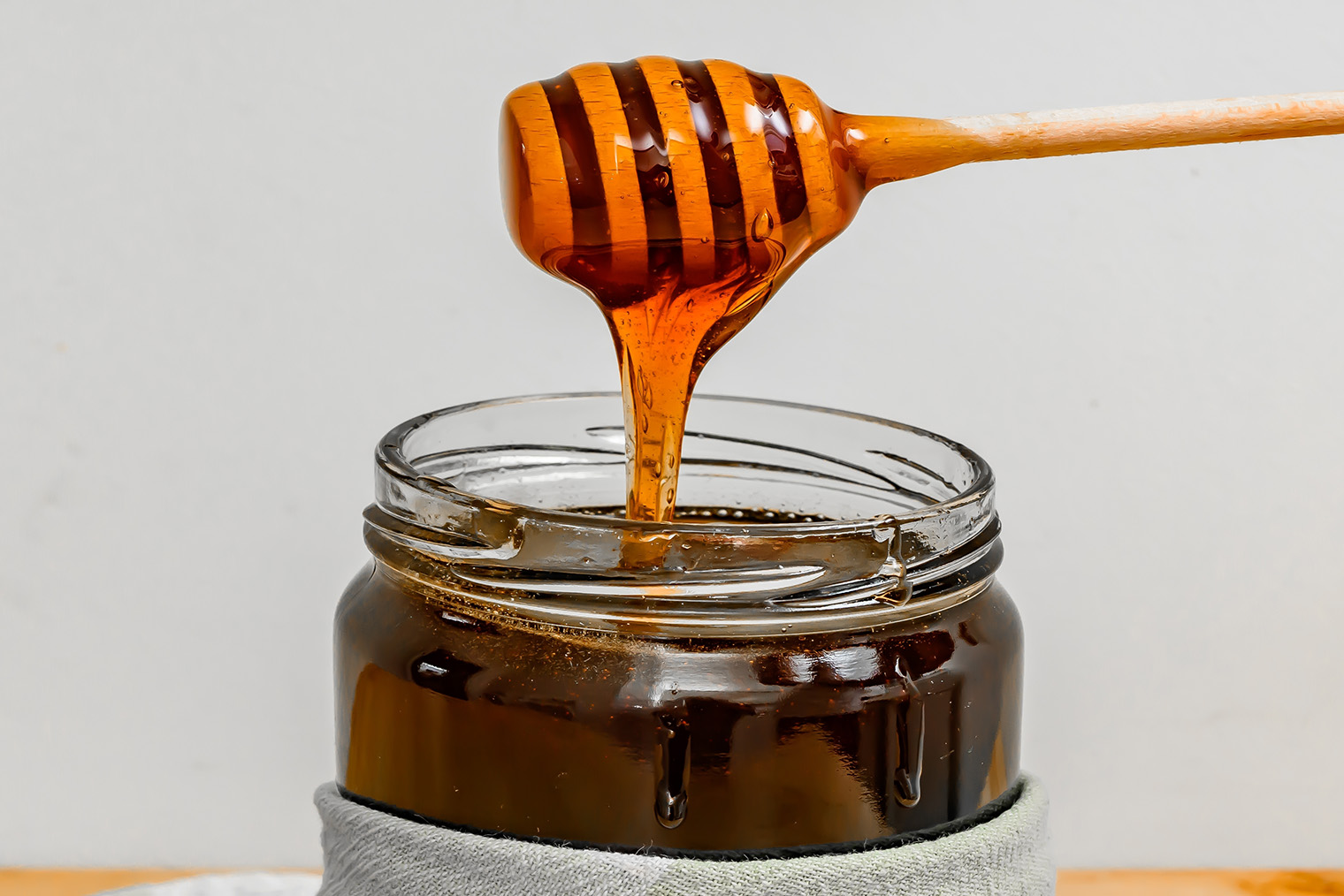 Вязкость. Свежий, недавно откачанный мед комнатной температуры всегда течет тоненькой струйкой, образует небольшую горку и не растекается лужей.