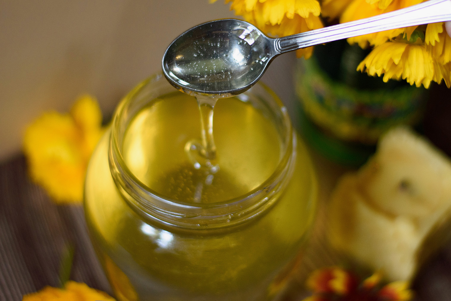 Откачивают мед после цветения основного медоноса — с конца весны до начала осени, в зависимости от растений. Поэтому, например, не может быть жидкого подсолнечного или гречишного меда в декабре — только если его разогрели. Подсолнух цветет в июле — августе, гречиха — в июне и июле. Нет смысла покупать липовый мед в начале июня: липа цветет в конце этого месяца.