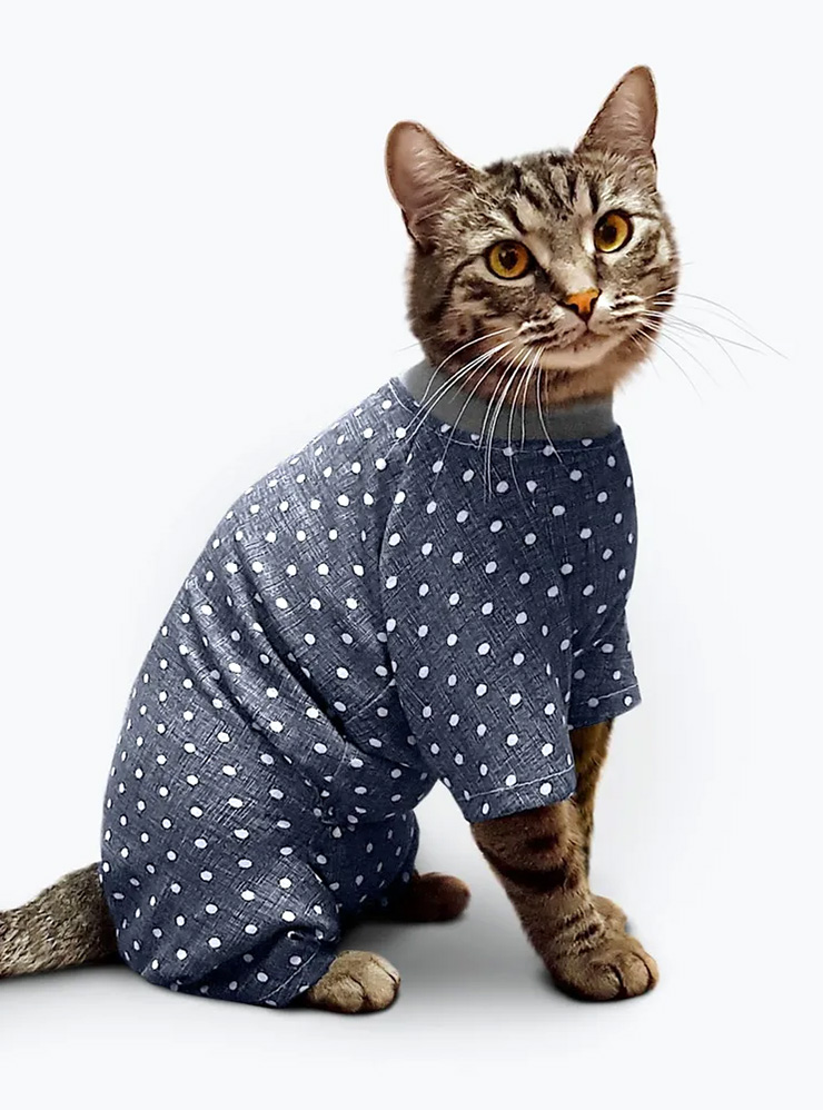 Обычно кошкам покупают попону, а котам — мягкий или пластиковый защитный воротник. Они защитят шов от разлизывания. Но некоторым кошкам будет достаточно воротника, если в нем у животного дотянуться до шва не получится.