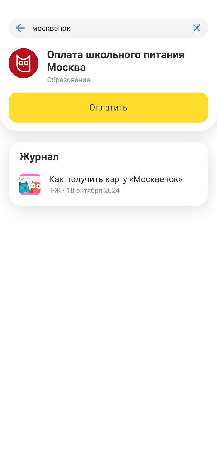 Т-Банк. На сайте карты «Москвенок» нет инструкции для пополнения с карты Т-Банка, но это тоже возможно — через раздел «Платежи».