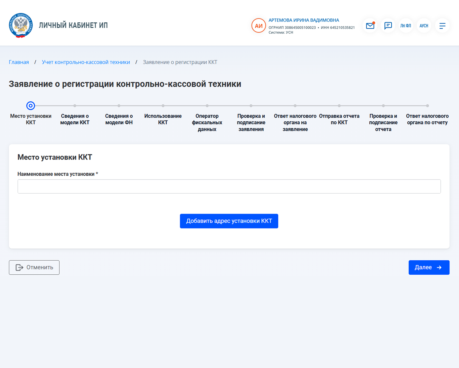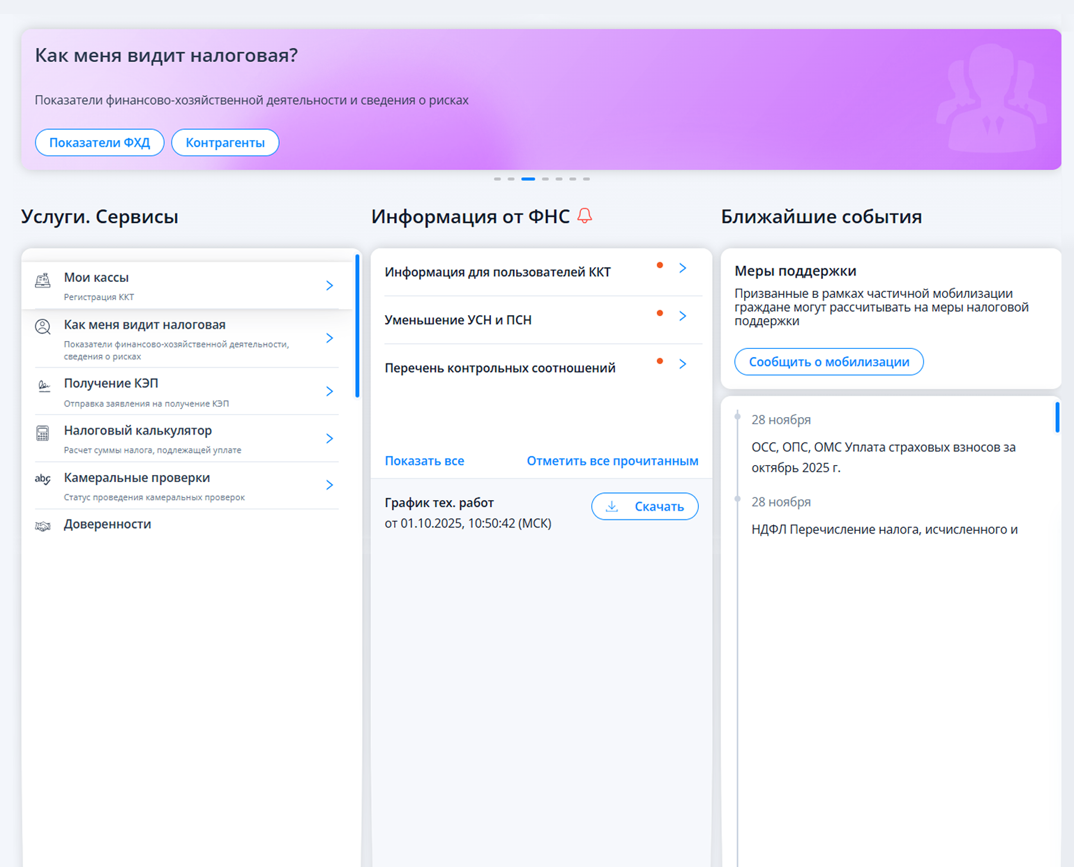 ОФД или его партнер предоставляет инструкцию или консультирует по процессу регистрации кассы в своем личном кабинете. Здесь я покажу, как этот процесс происходит в личном кабинете налоговой службы.