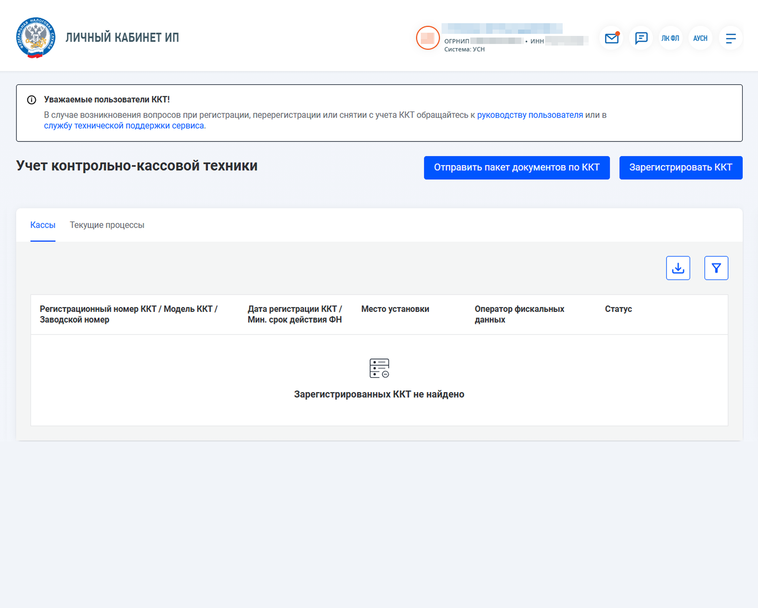 После оплаты услуг ОФД в личном кабинете появится информация об установленной кассе и фискальном накопителе — их нужно зарегистрировать в личном кабинете на сайте ФНС. Для входа в личный кабинет и регистрации кассы потребуется квалифицированная электронная подпись руководителя организации или ИП.